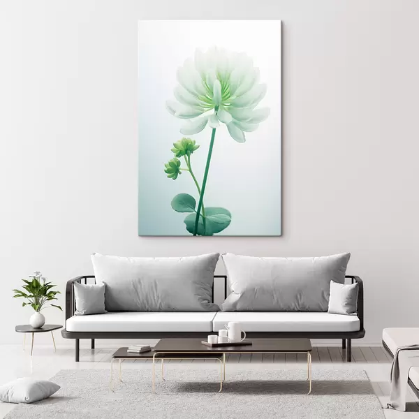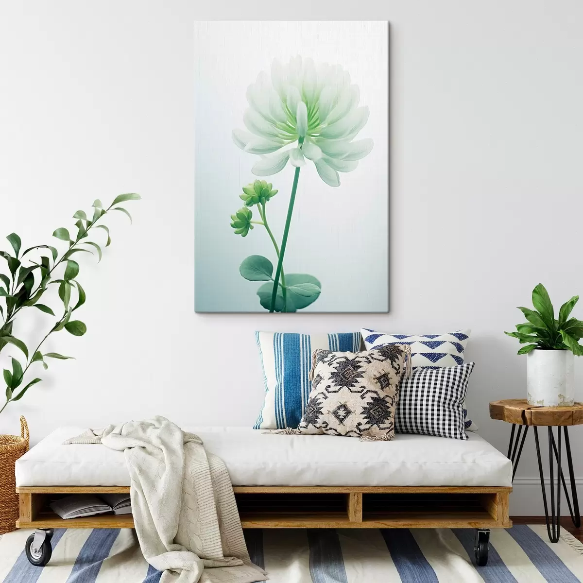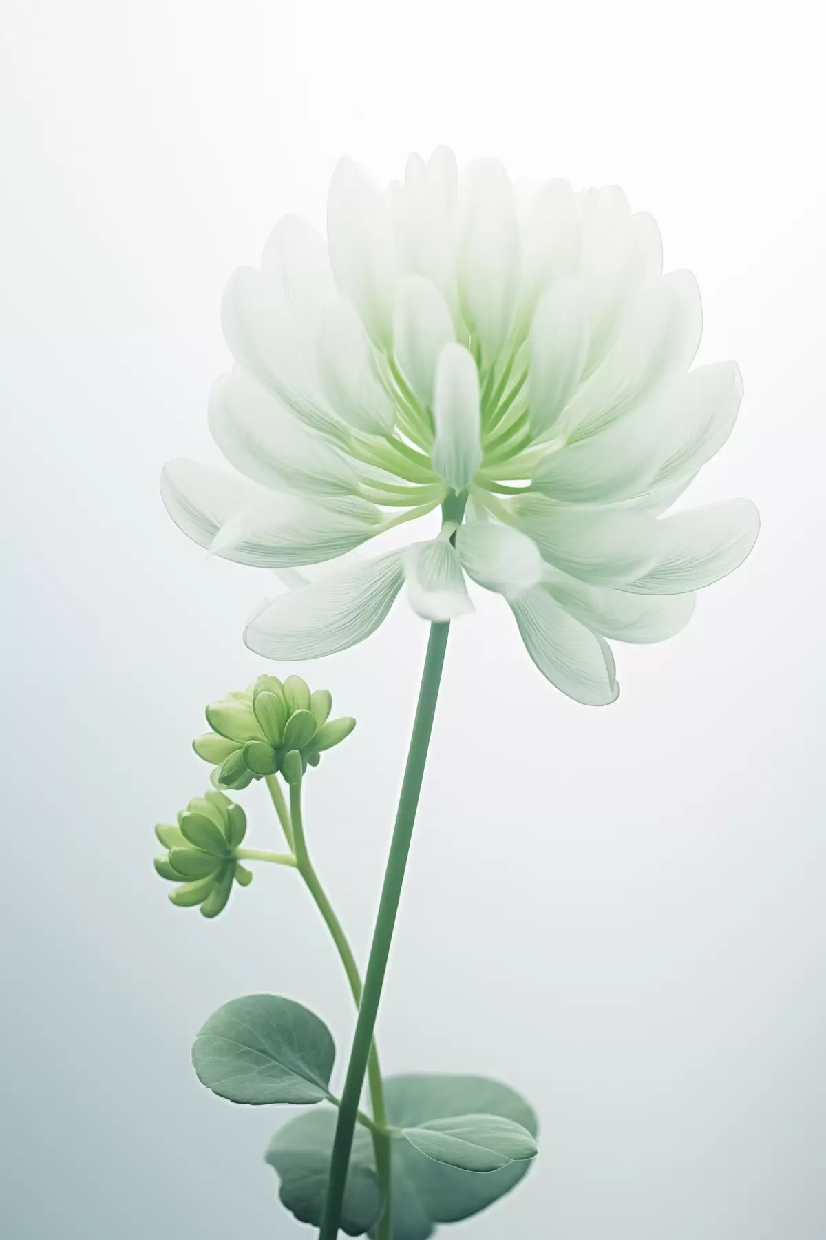 Maalid Valge ristiku lill rohelise varre ja lehtedega, pehme valgustus, puhas taust, minimalistlik kompositsioon, botaanika Nr s45171