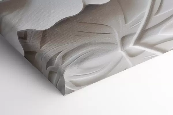 Maalid Dekoratiivsed minimalistlikud valged lilled koos lehtedega, reljeefne imitatsioon, valge taustaga Nr s45180