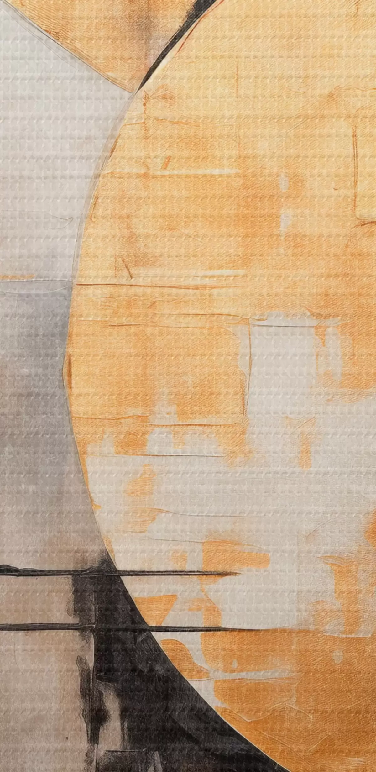 Maalid Abstraktne maal ringide, mustade ja kollaste joontega ning halli ja valge tooniga taustaga Nr s45185