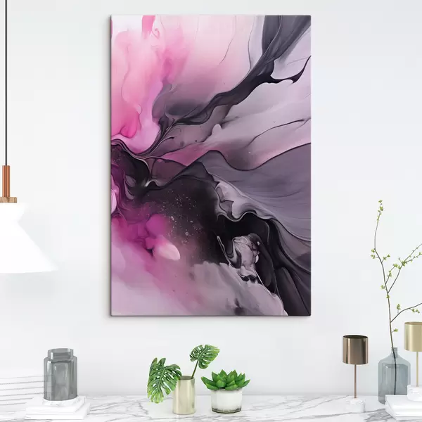 Maalid Abstraktsed roosa, lilla ja musta värvi keerised segunevad kokku voolavas, orgaanilises kompositsioonis, tekitades liikumise tunde Nr s45196