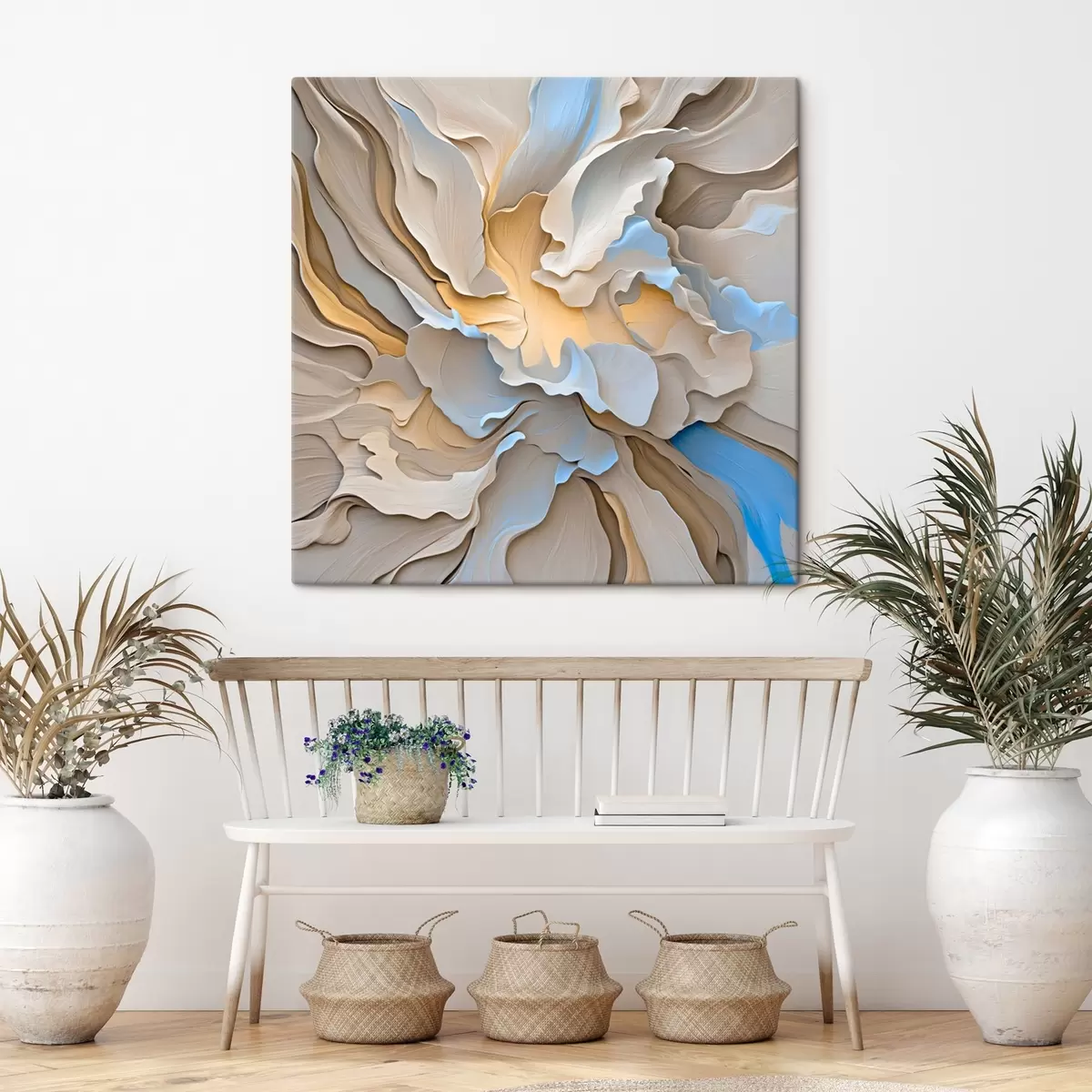 Maali võib riputada kohe pärast selle kättesaamist. Maal on pingutatud 2 cm laiusele puidust kandikule.
