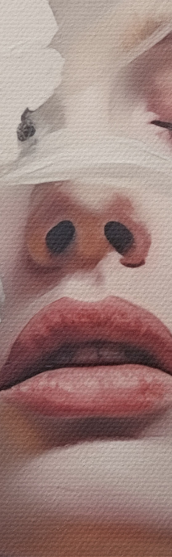 Selle lõuendi peenike niidipunus meenutab professionaalse kunstniku lõuendi pinda.