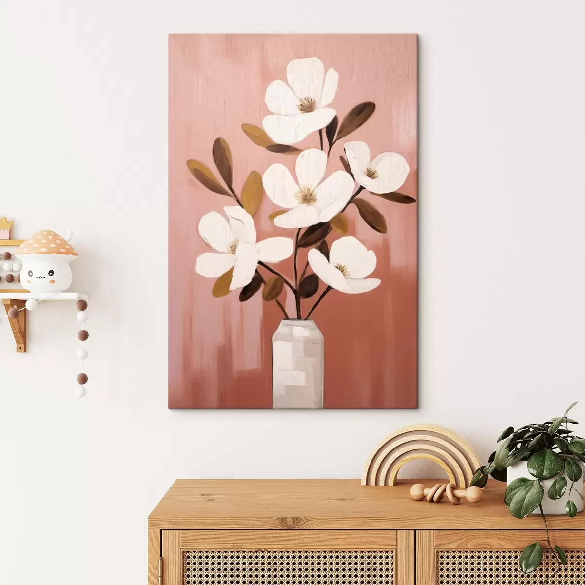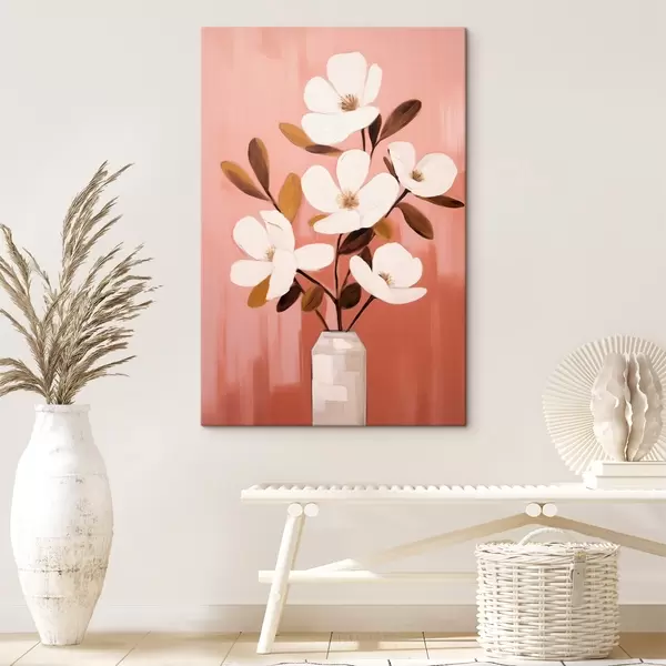 Maalid Valged magnooliad valges vaasis: minimalistlik lillemaal Nr s45254