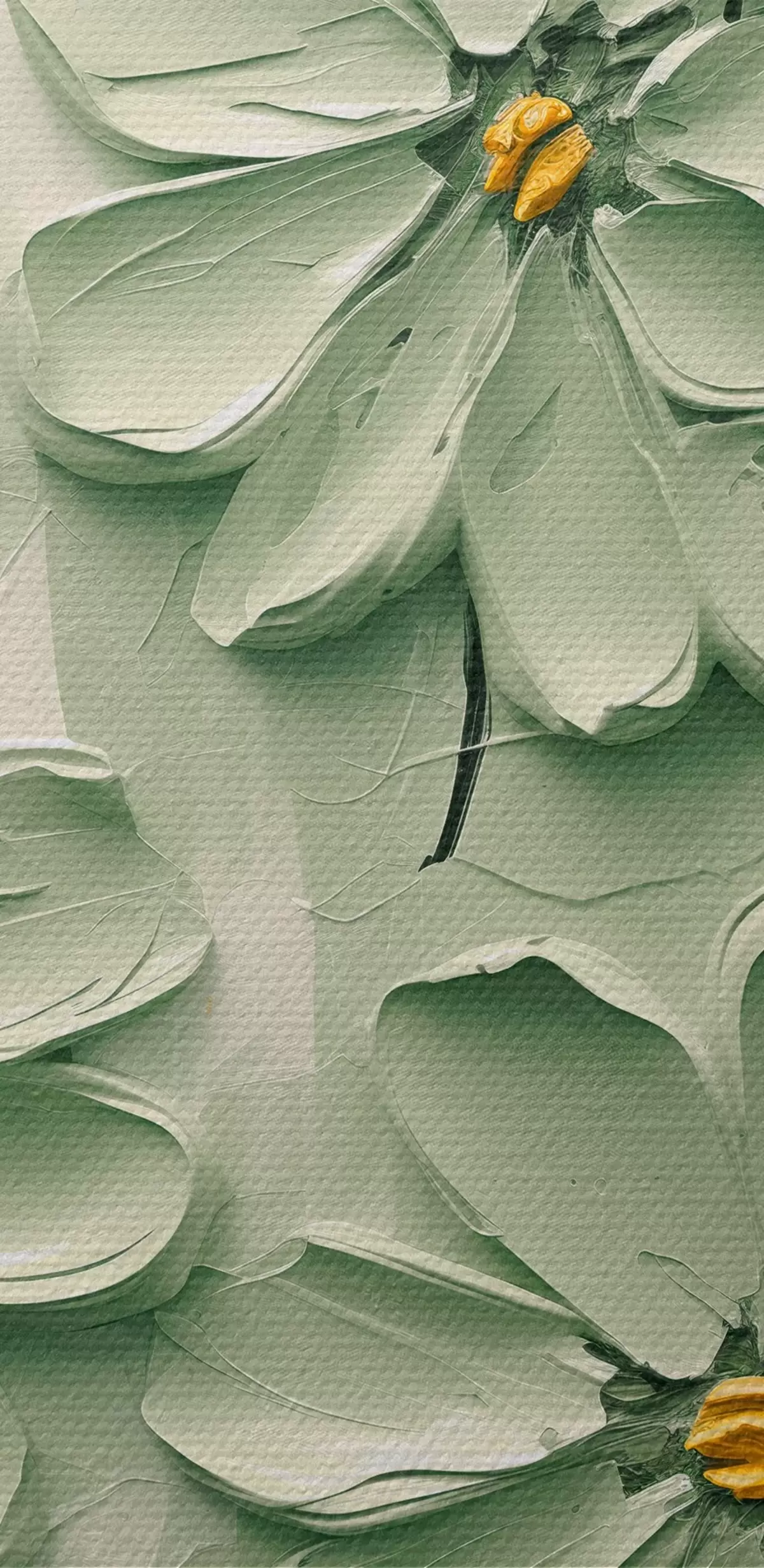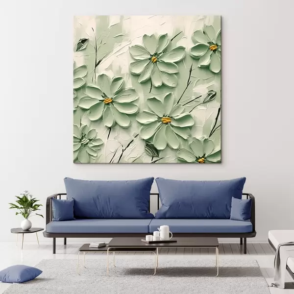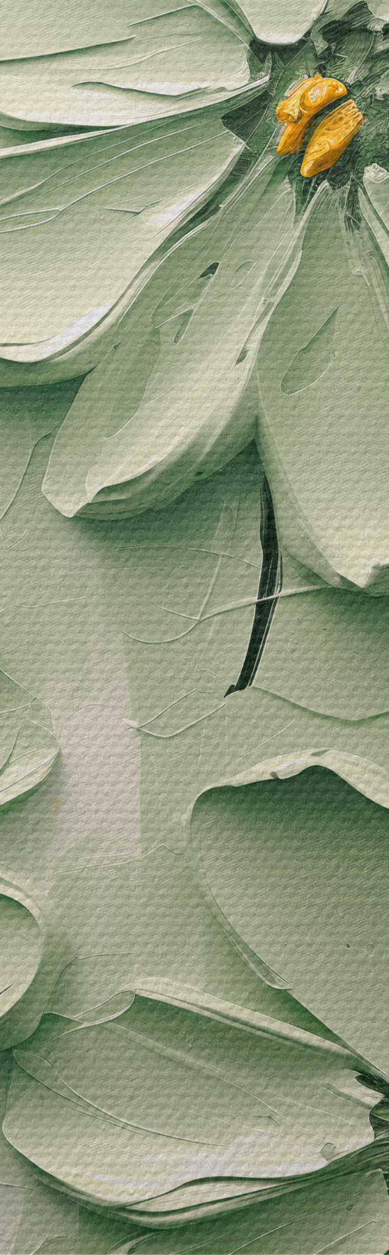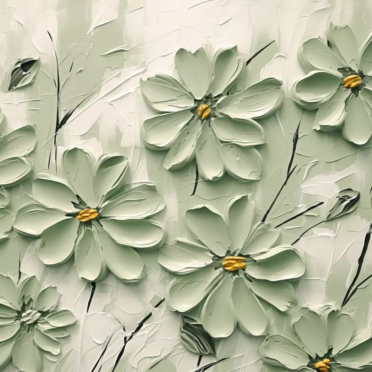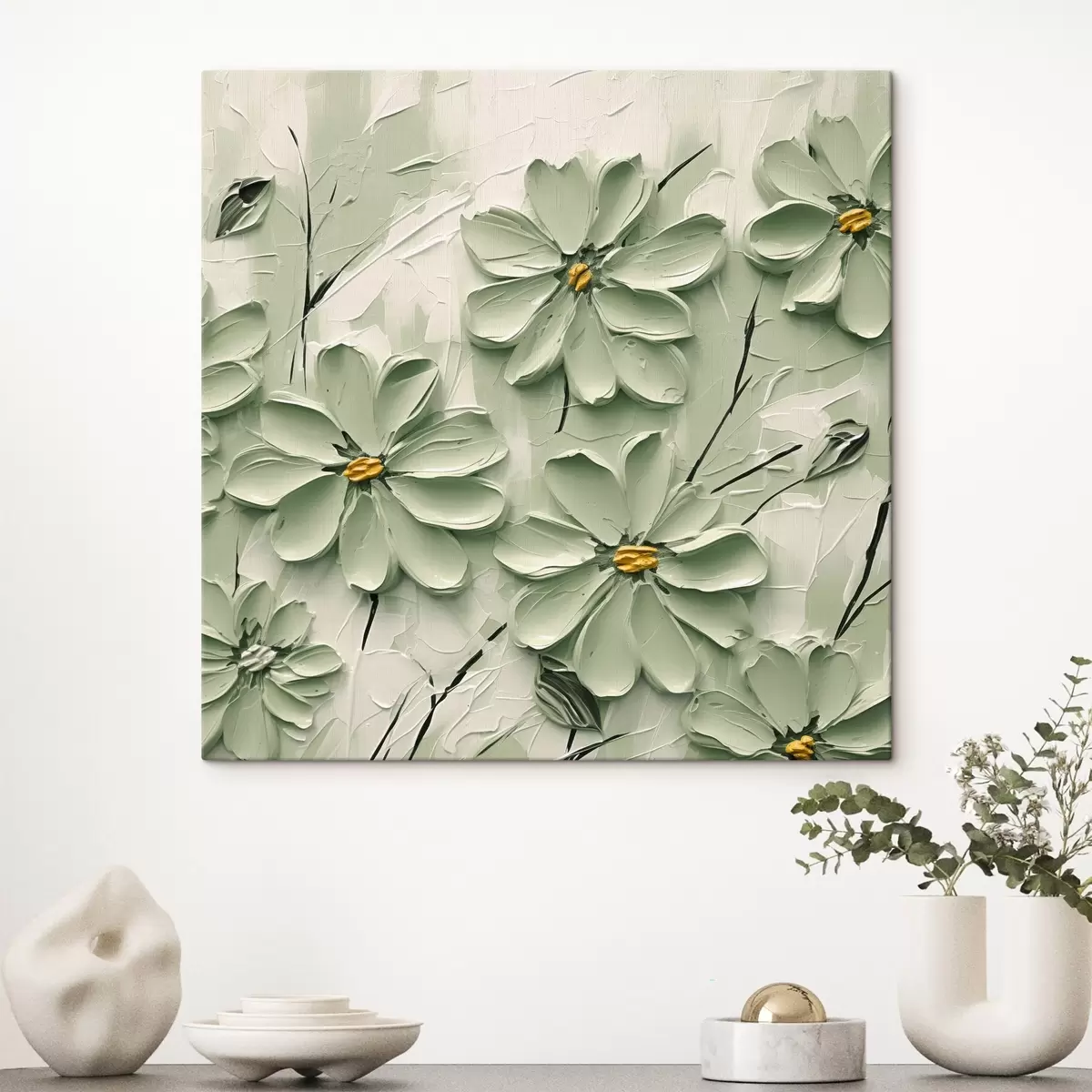 Maalid Rohelised lilled kollase keskusega värvitud paksude pintslitõmmetega heledal taustal Nr s45265