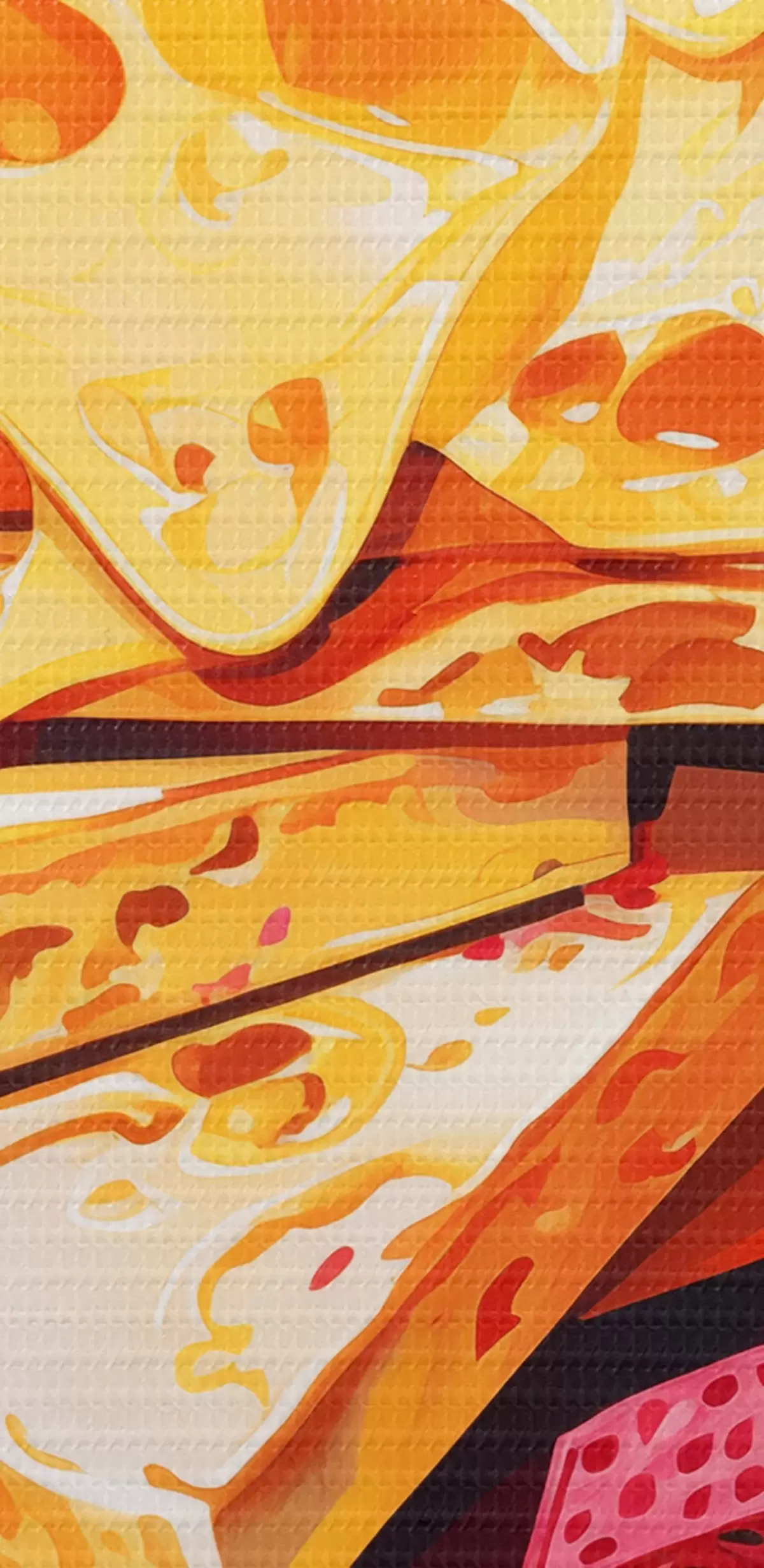 Selle lõuendi peenike niidipunus meenutab professionaalse kunstniku lõuendi pinda.