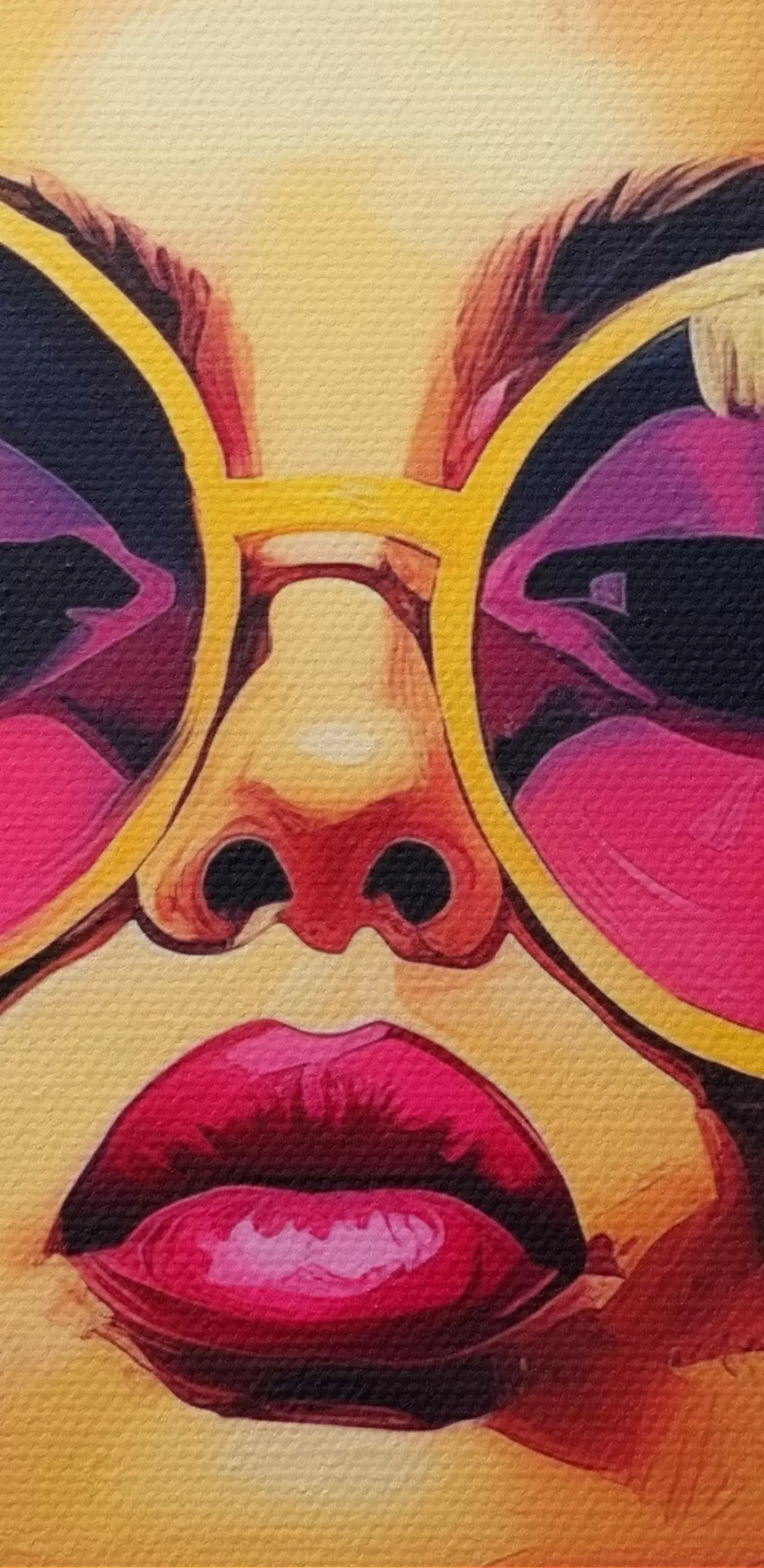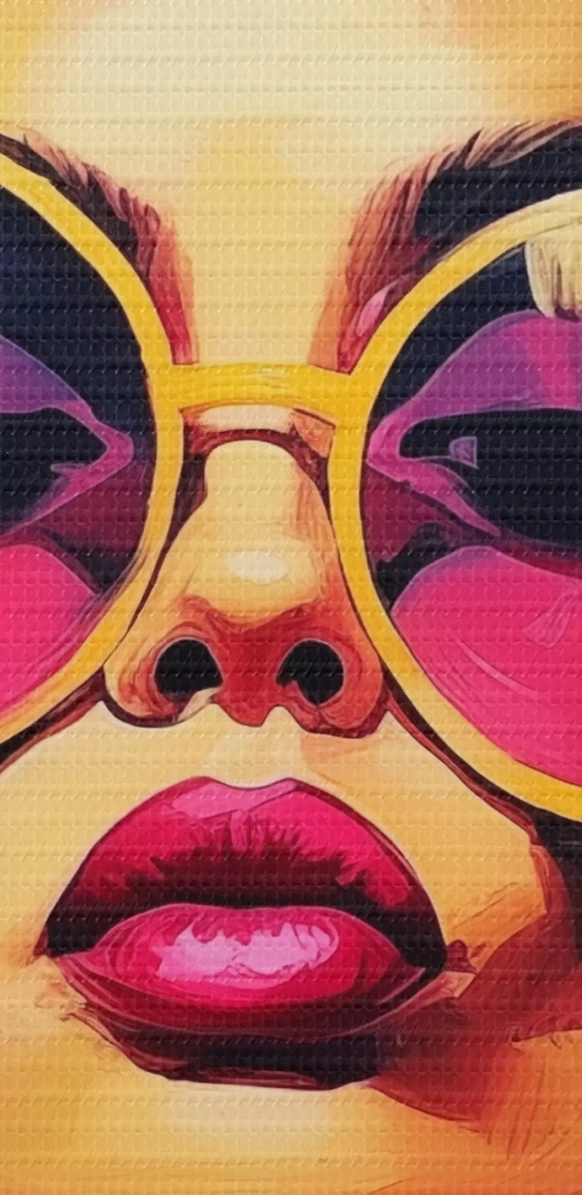 Selle lõuendi peenike niidipunus meenutab professionaalse kunstniku lõuendi pinda.