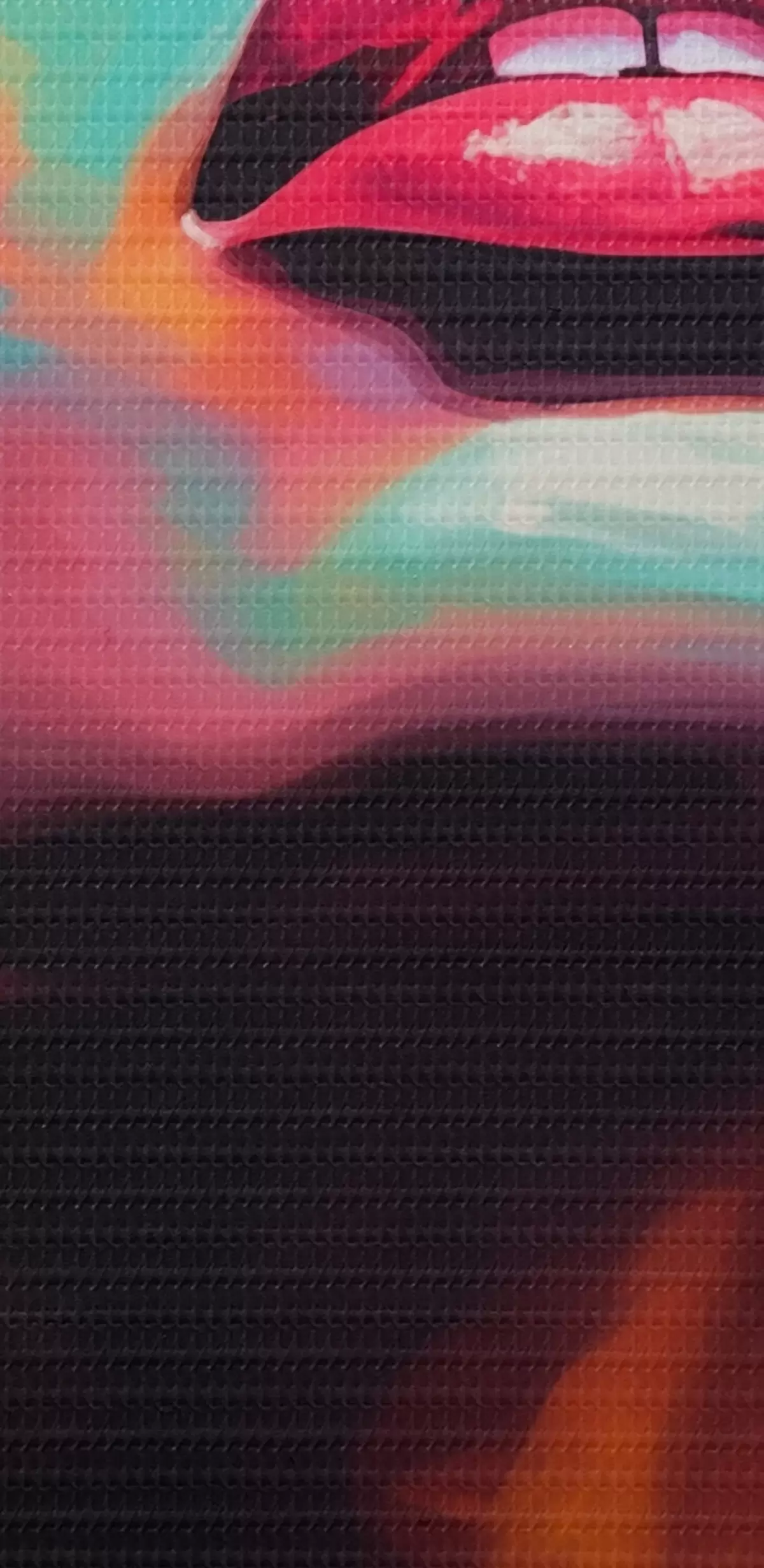 Selle lõuendi peenike niidipunus meenutab professionaalse kunstniku lõuendi pinda.