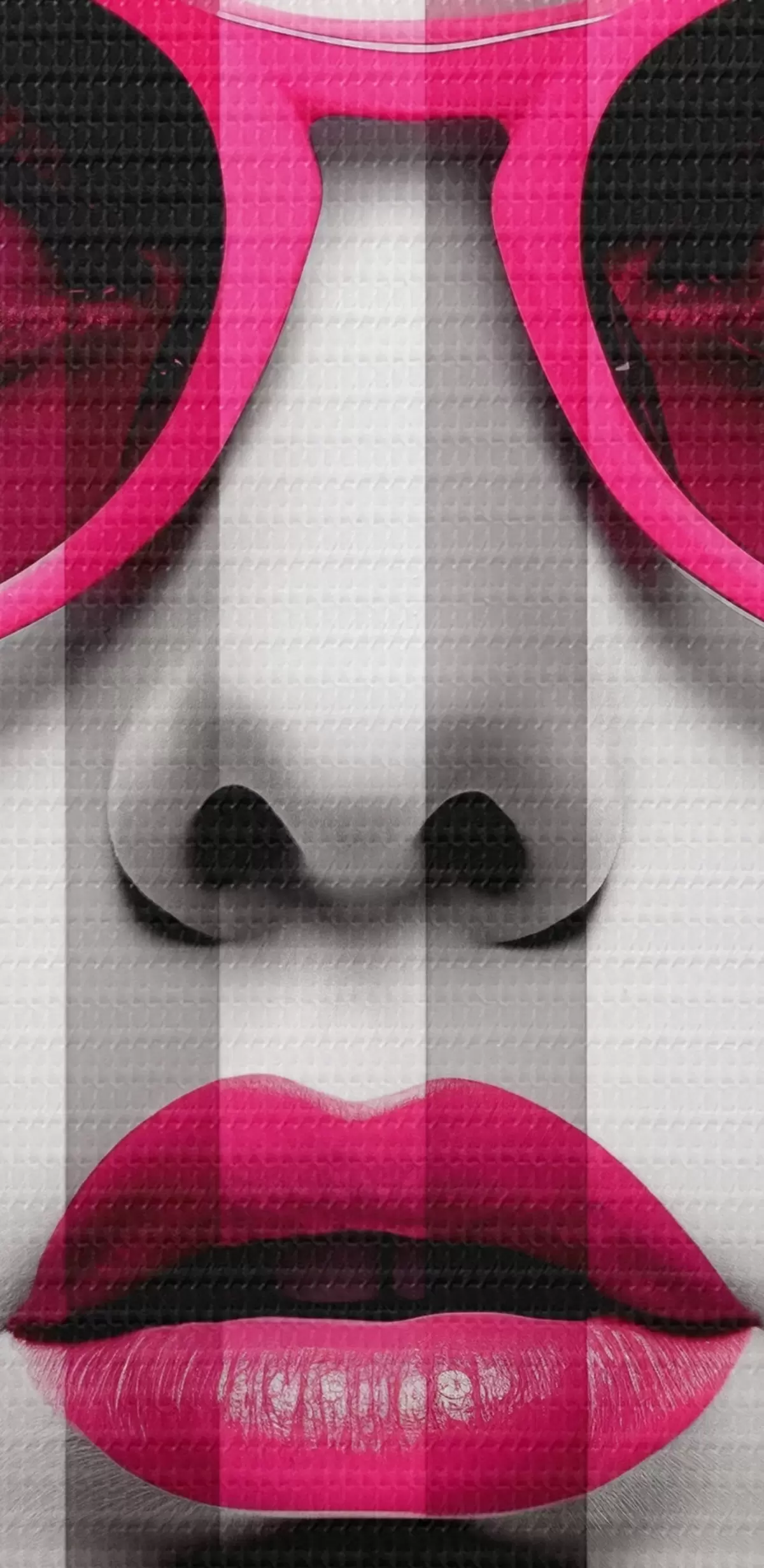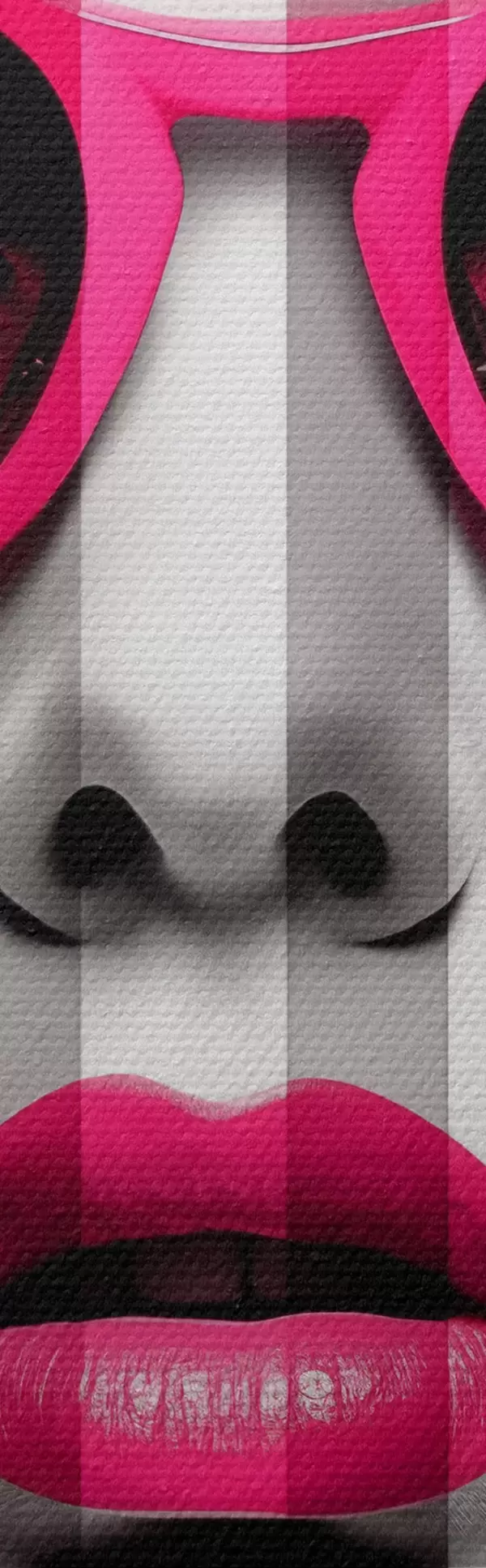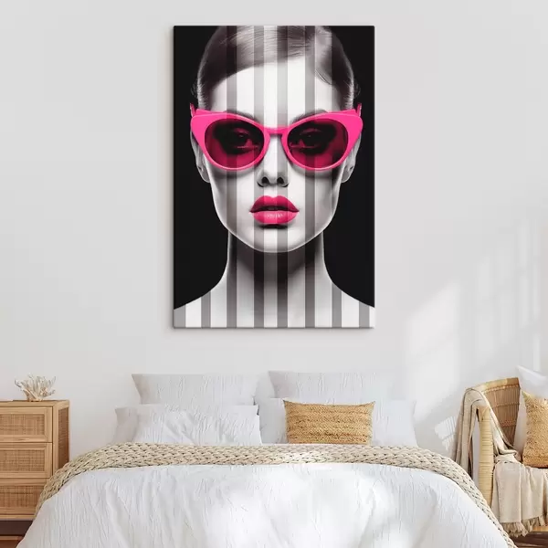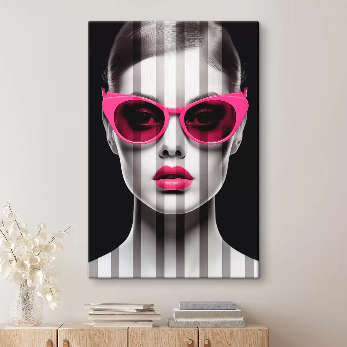 Maalid Naine kannab roosa prille, millel on mustad ja valged triibud Nr s45315