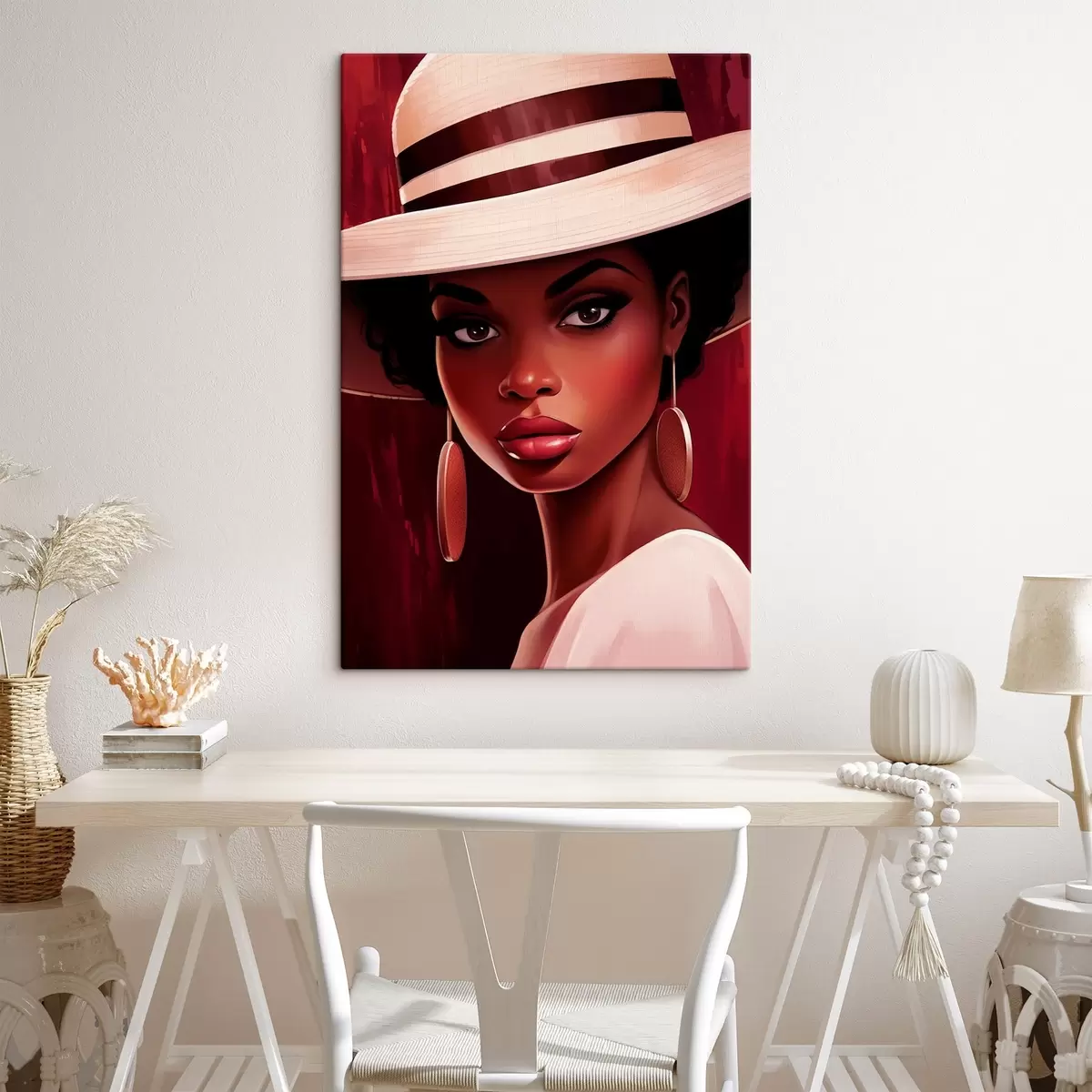 Maalid Naine heledas mütsis ja ümmarguste kõrvarõngastega Nr s45323