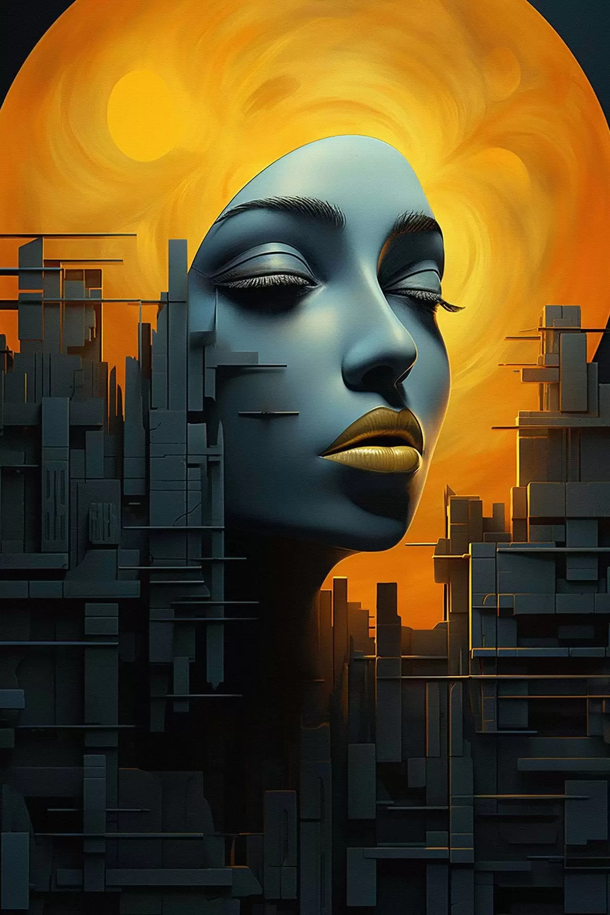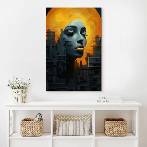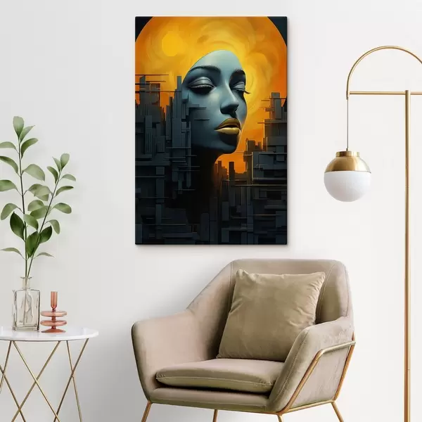 Maalid Inimesed, tüdruku nägu linna abstraktsel taustal Nr s45342