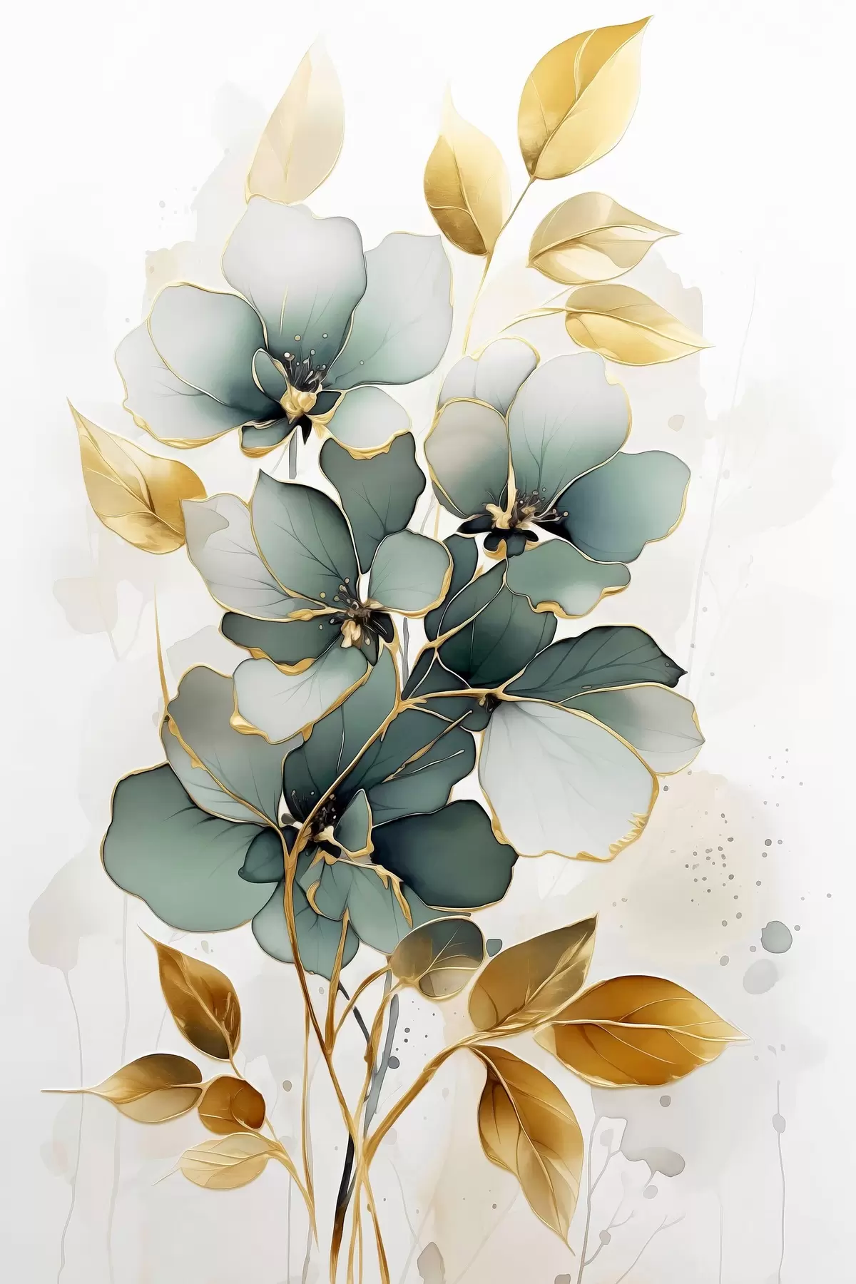 Maalid Abstraktne lillede ja lehtedega haru Nr s45367