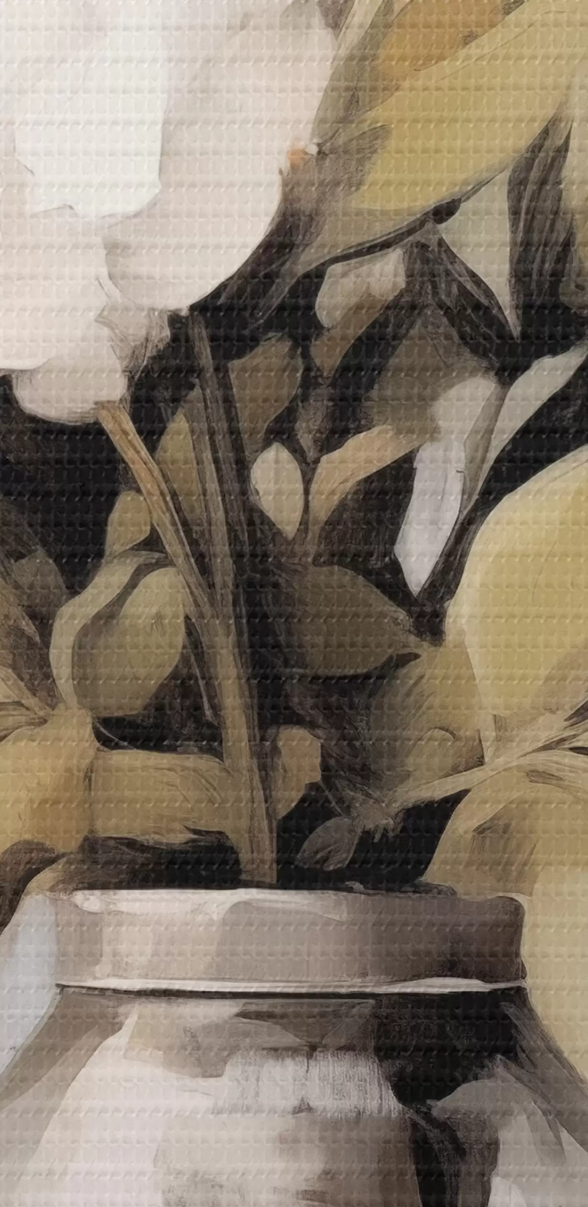 Selle lõuendi peenike niidipunus meenutab professionaalse kunstniku lõuendi pinda.