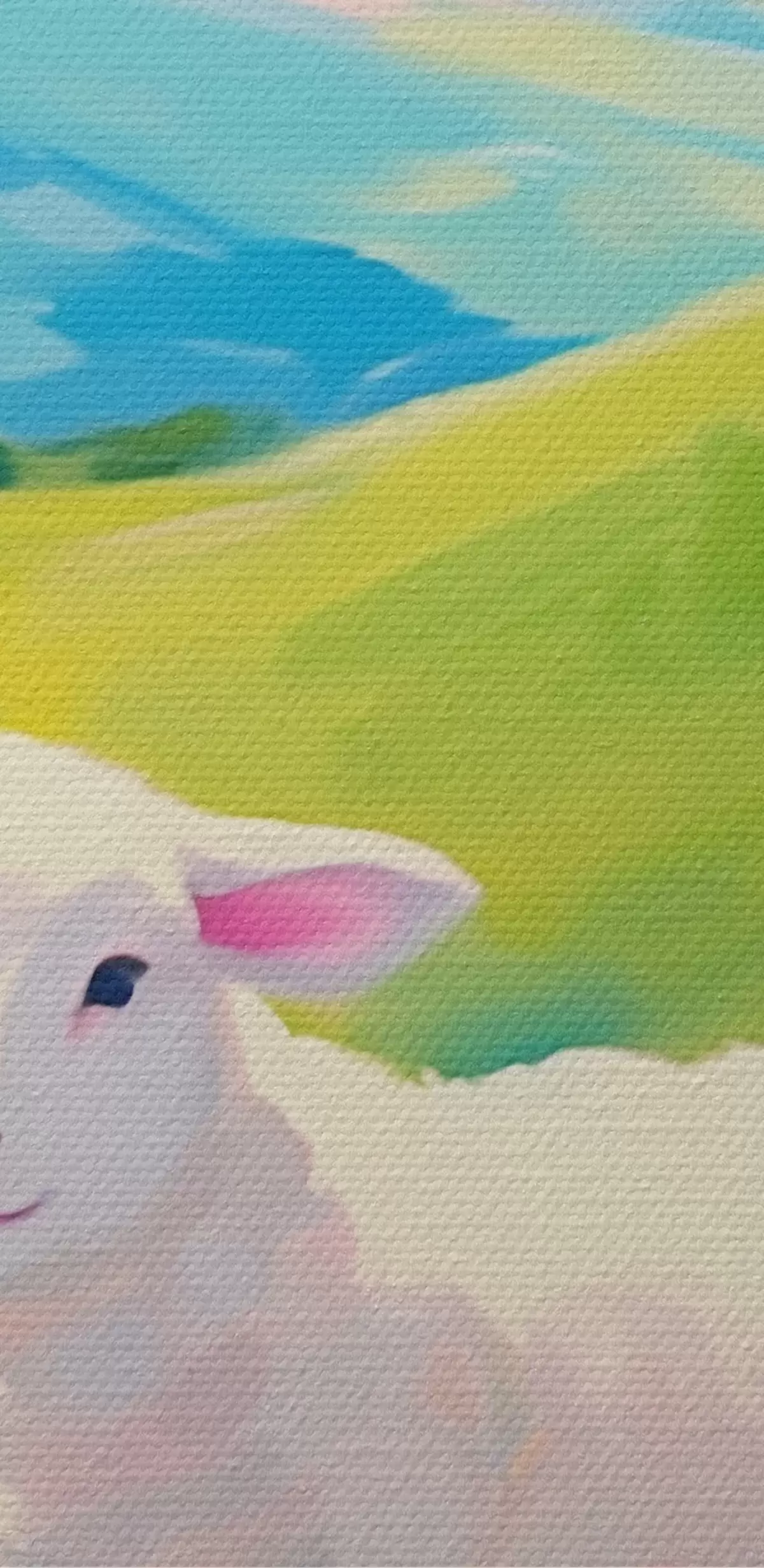 Selle lõuendi peenike niidipunus meenutab professionaalse kunstniku lõuendi pinda.