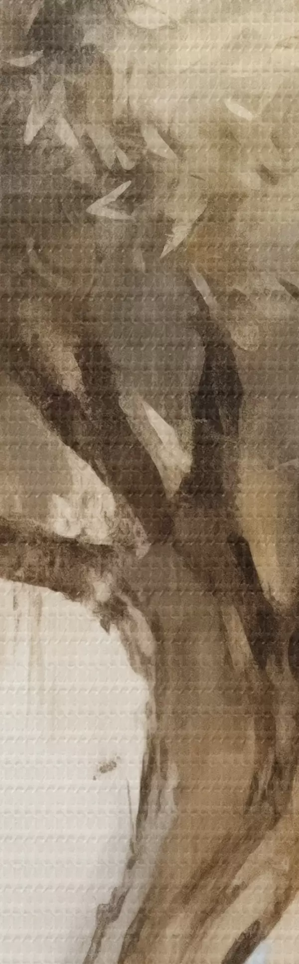 Selle lõuendi peenike niidipunus meenutab professionaalse kunstniku lõuendi pinda.