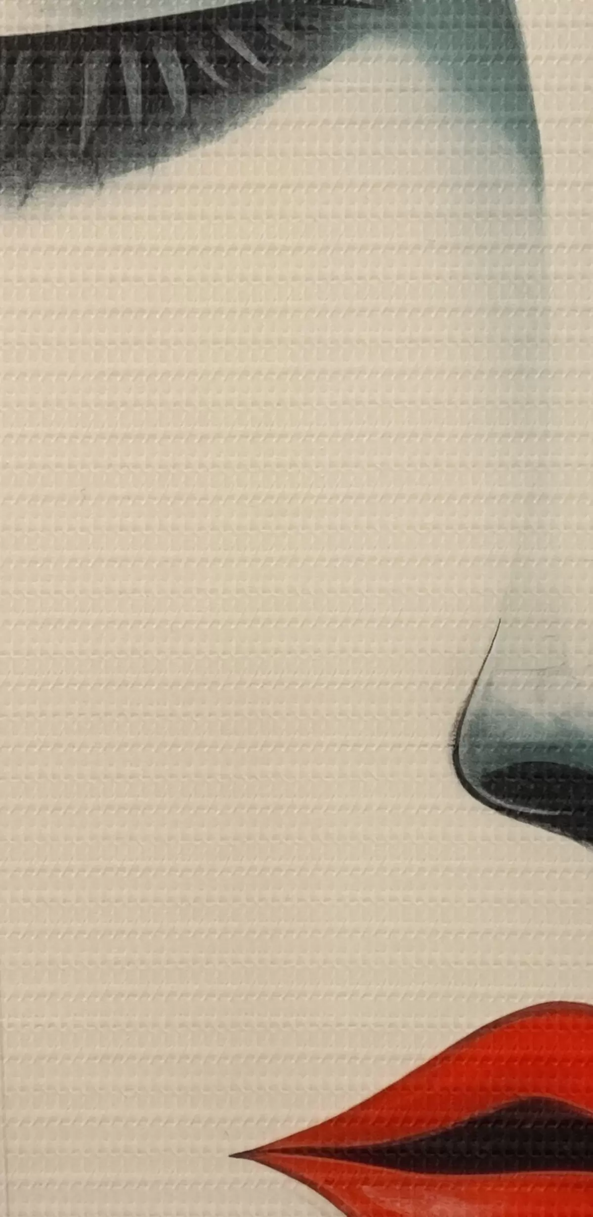 Selle lõuendi peenike niidipunus meenutab professionaalse kunstniku lõuendi pinda.