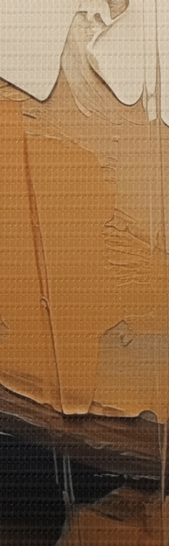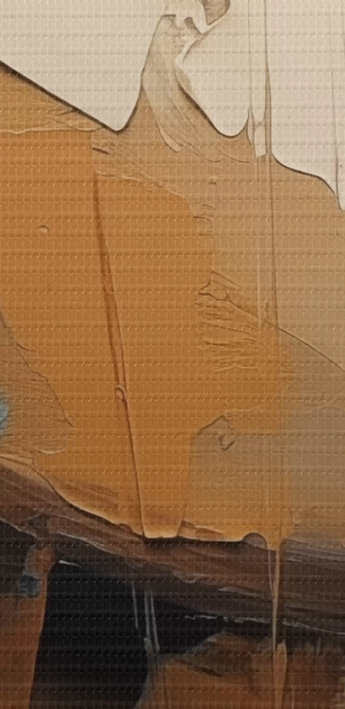 Selle lõuendi peenike niidipunus meenutab professionaalse kunstniku lõuendi pinda.