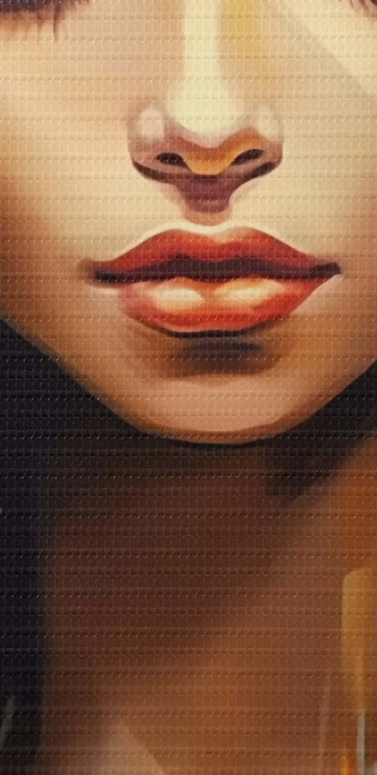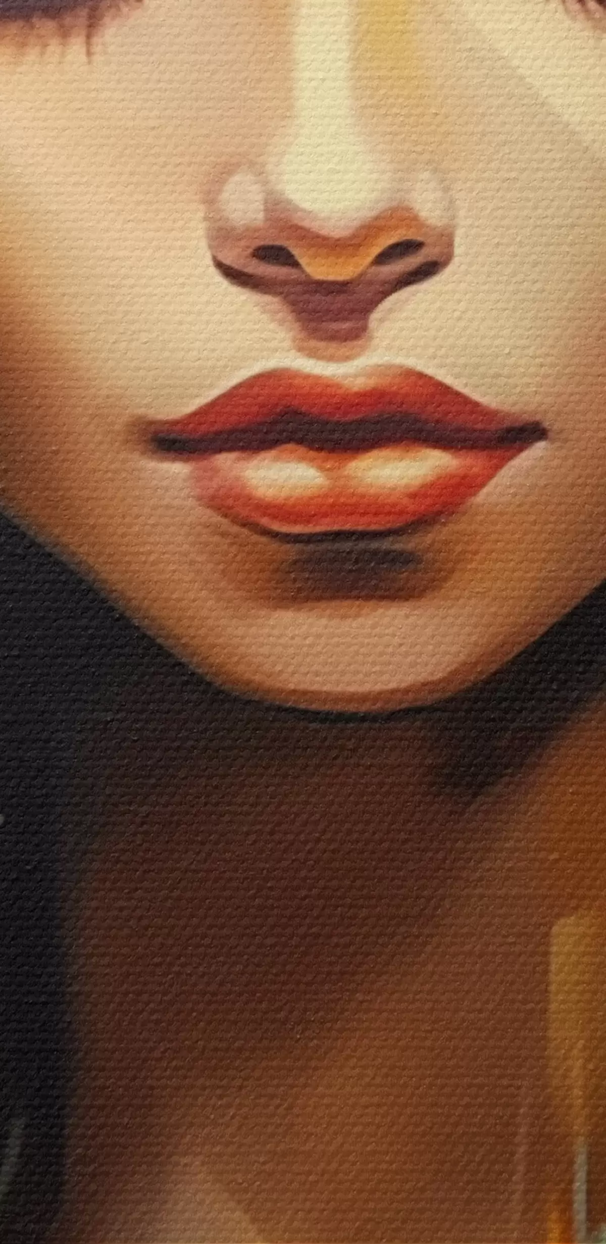 Selle lõuendi peenike niidipunus meenutab professionaalse kunstniku lõuendi pinda.