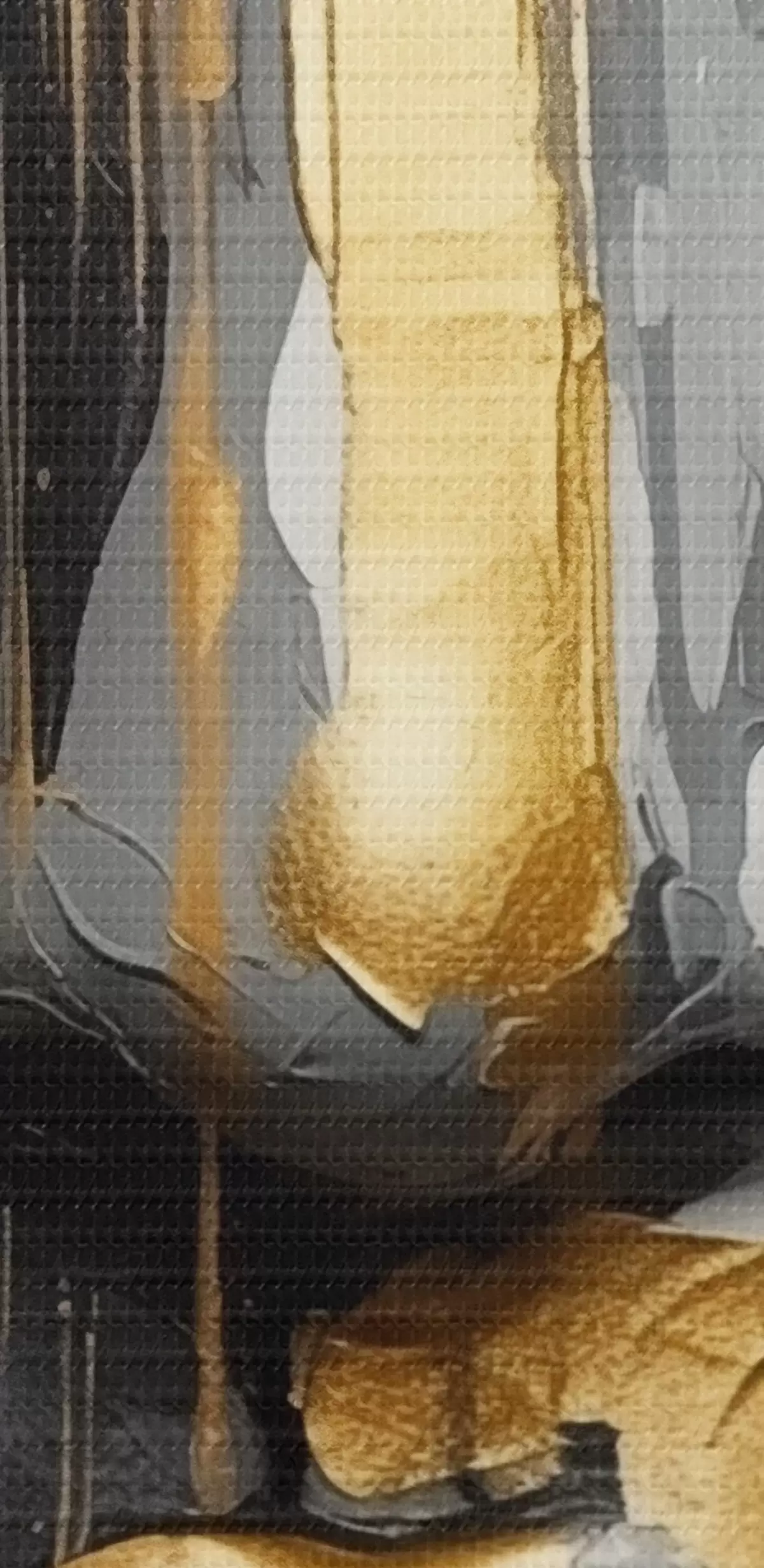 Selle lõuendi peenike niidipunus meenutab professionaalse kunstniku lõuendi pinda.
