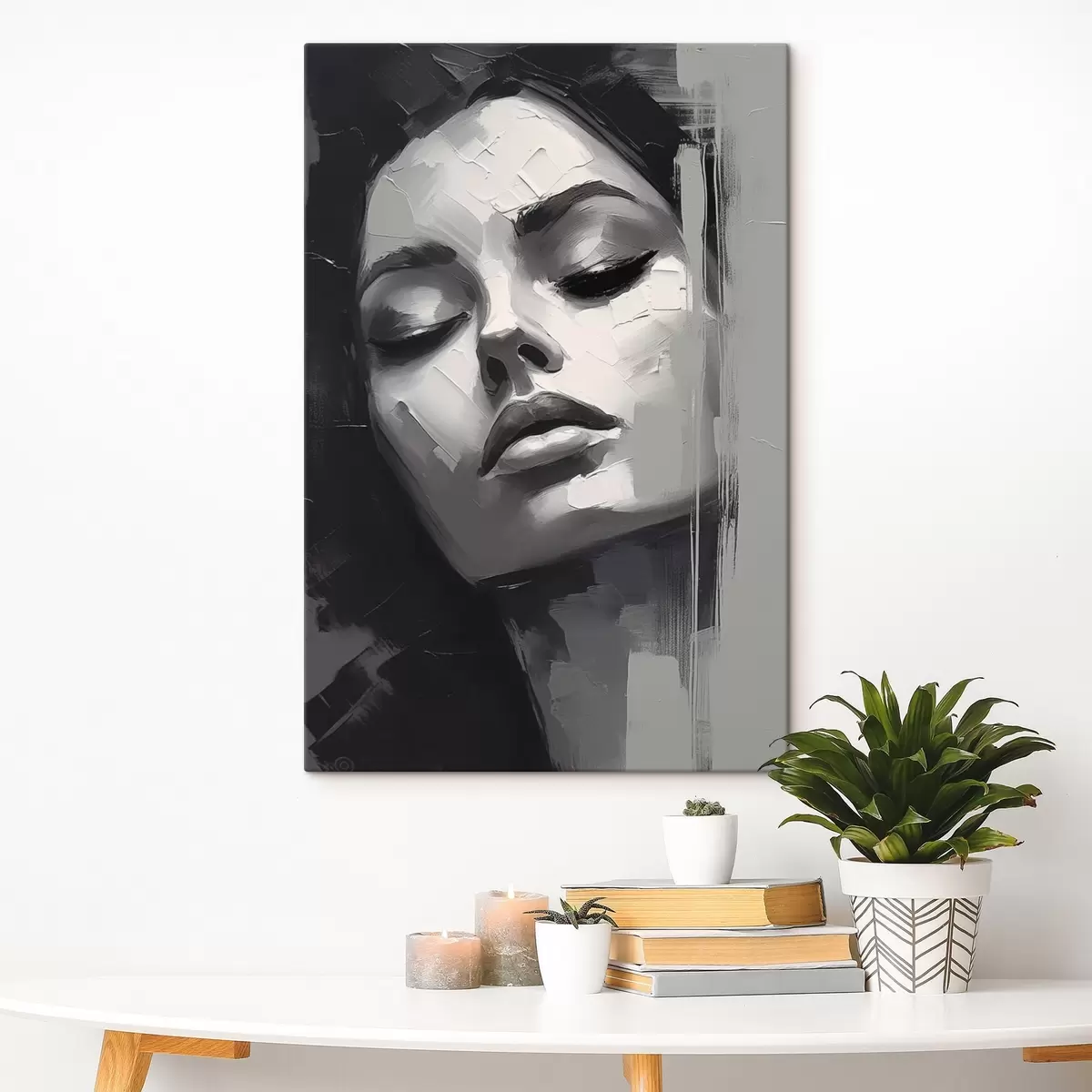 Maalid Must-valge portree suletud silmadega naisest Nr s45479