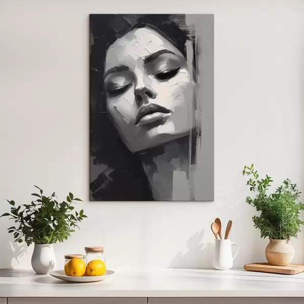 Maalid Must-valge portree suletud silmadega naisest Nr s45479