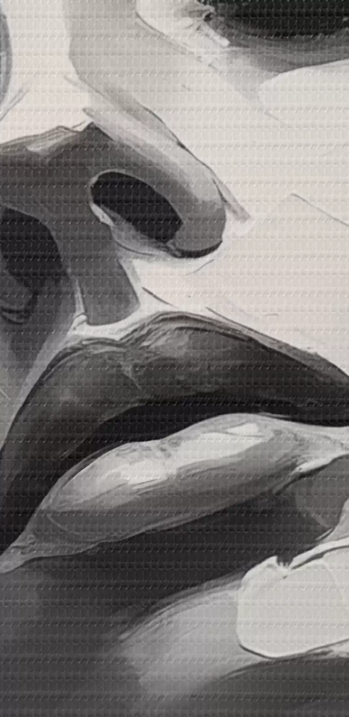 Selle lõuendi peenike niidipunus meenutab professionaalse kunstniku lõuendi pinda.