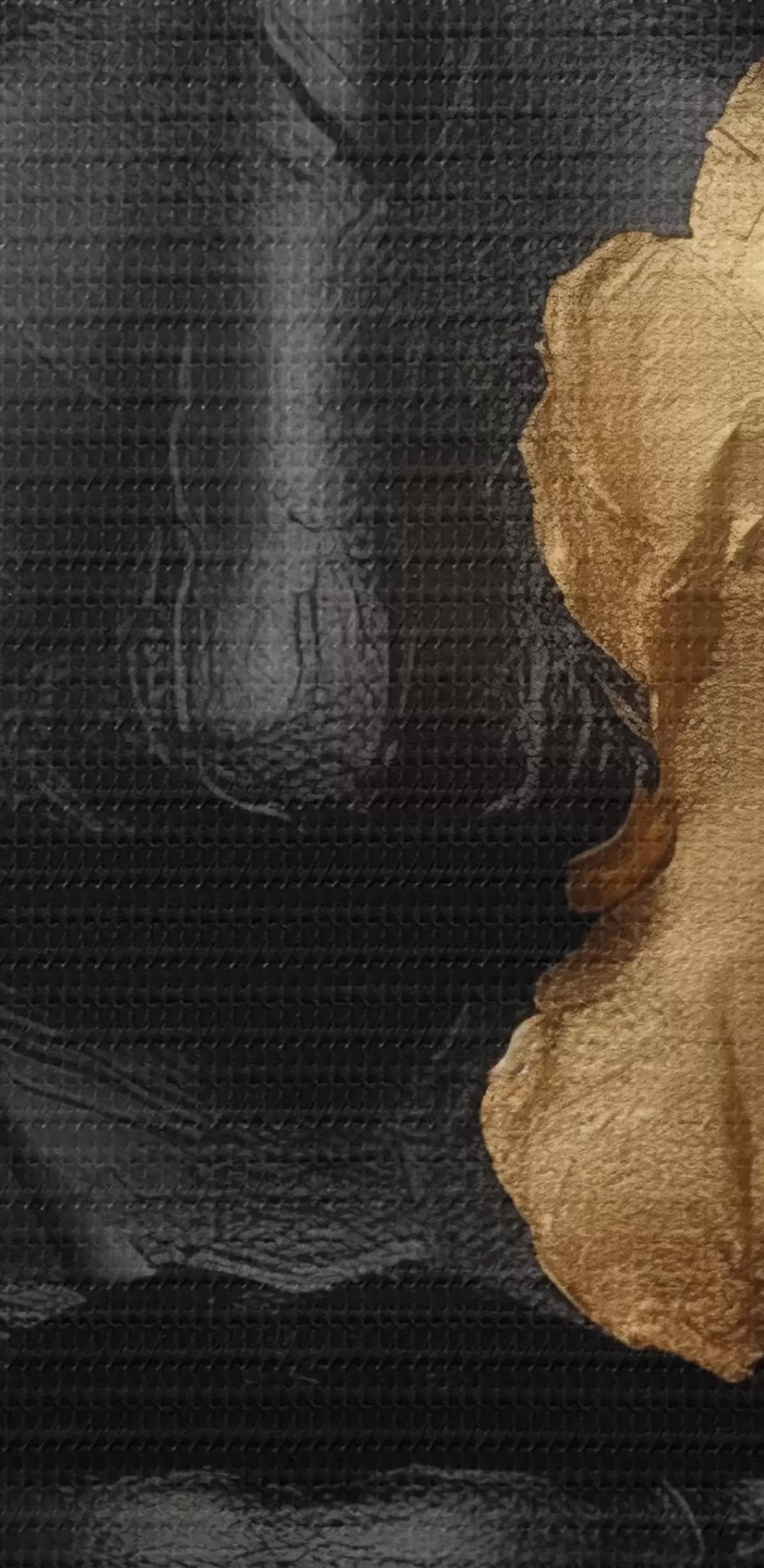 Selle lõuendi peenike niidipunus meenutab professionaalse kunstniku lõuendi pinda.