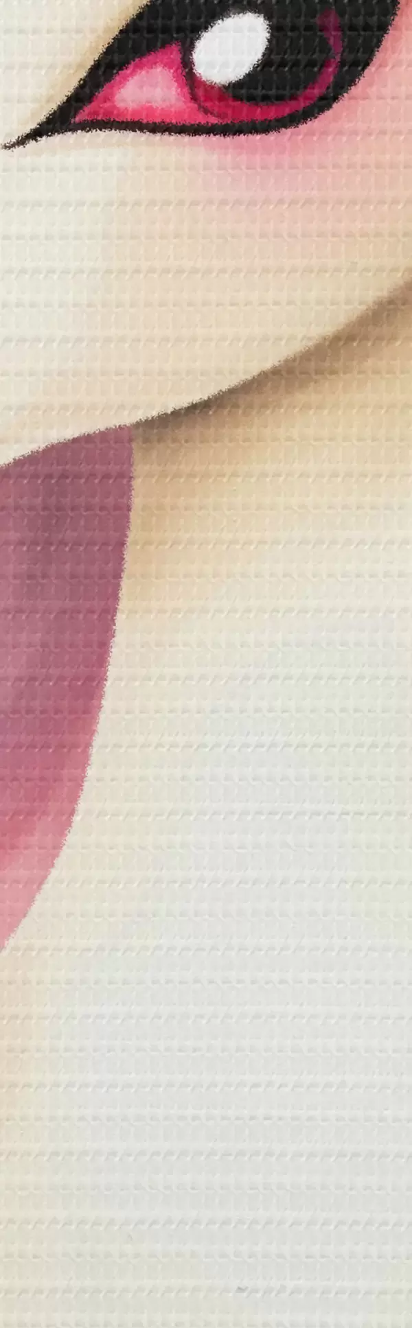 Selle lõuendi peenike niidipunus meenutab professionaalse kunstniku lõuendi pinda.