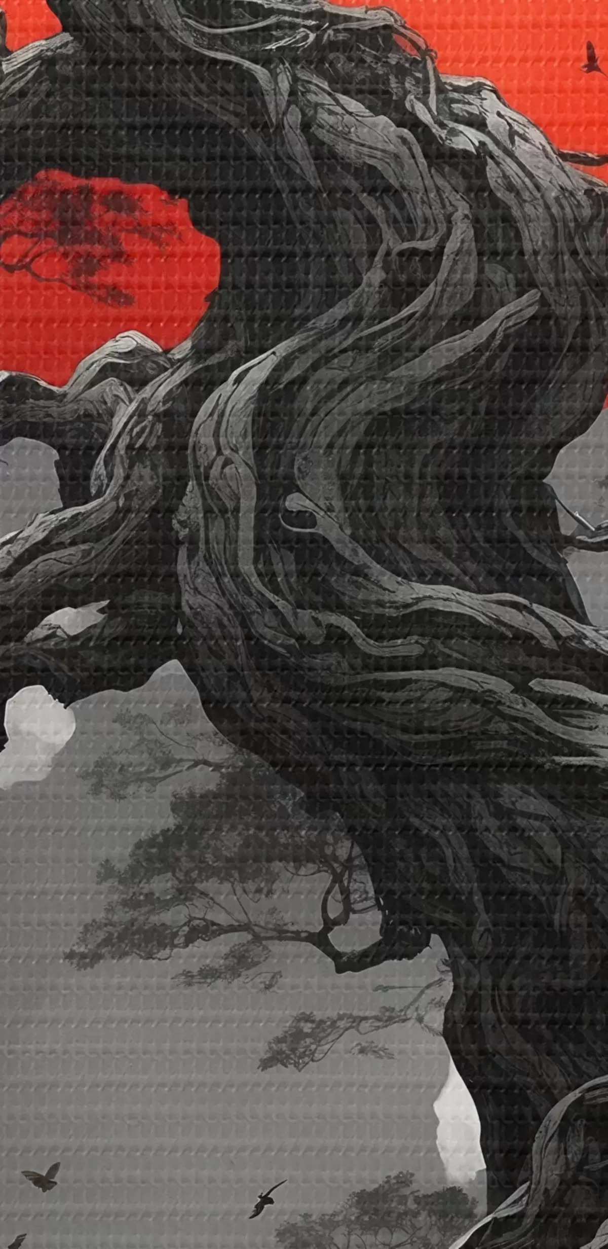 Selle lõuendi peenike niidipunus meenutab professionaalse kunstniku lõuendi pinda.