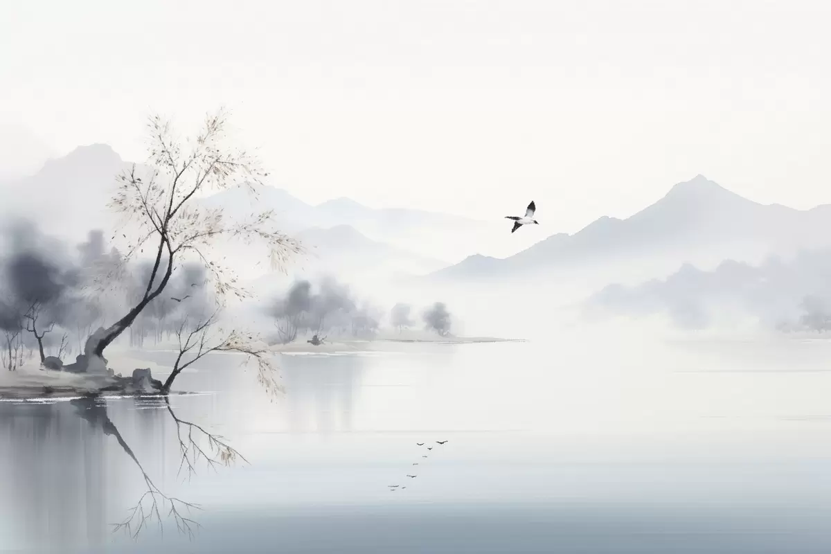 Maalid Udune maastik puu, mägede ja lindudega Nr s45518