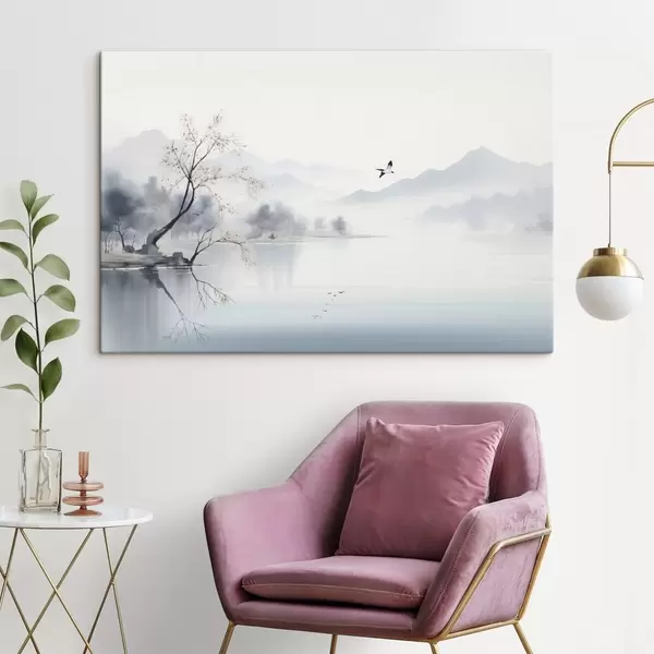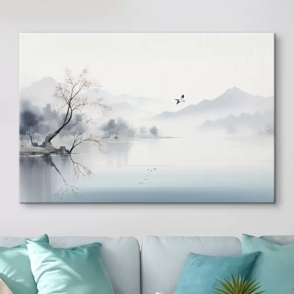 Maalid Udune maastik puu, mägede ja lindudega Nr s45518