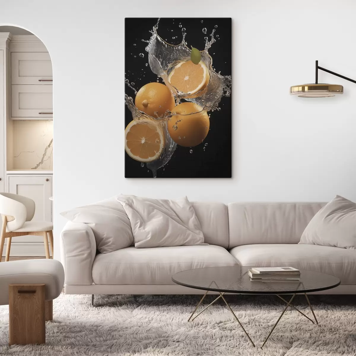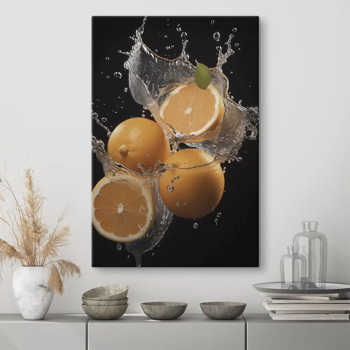 Maalid Mahlased apelsinid vees pritsides Nr s45526