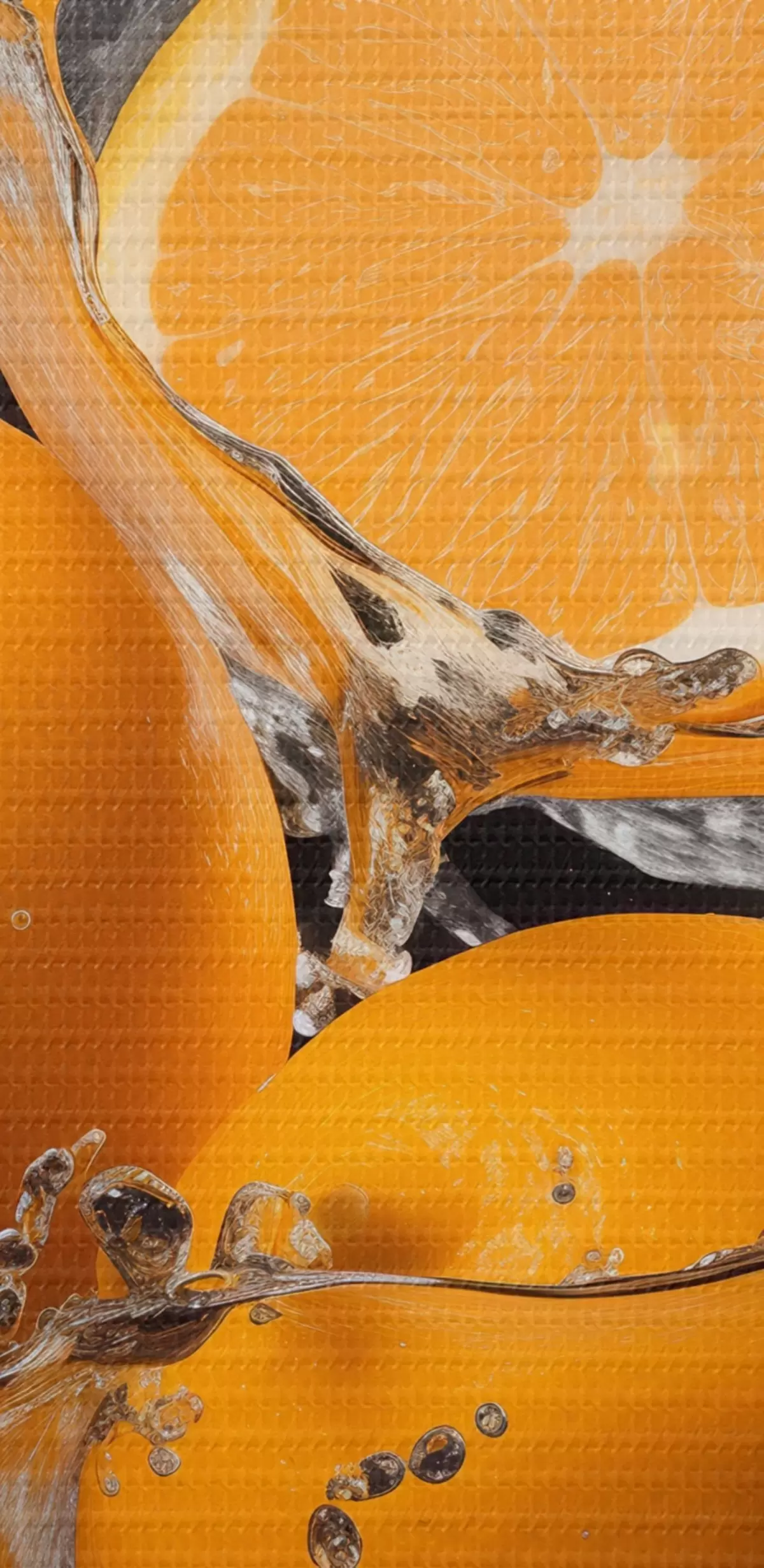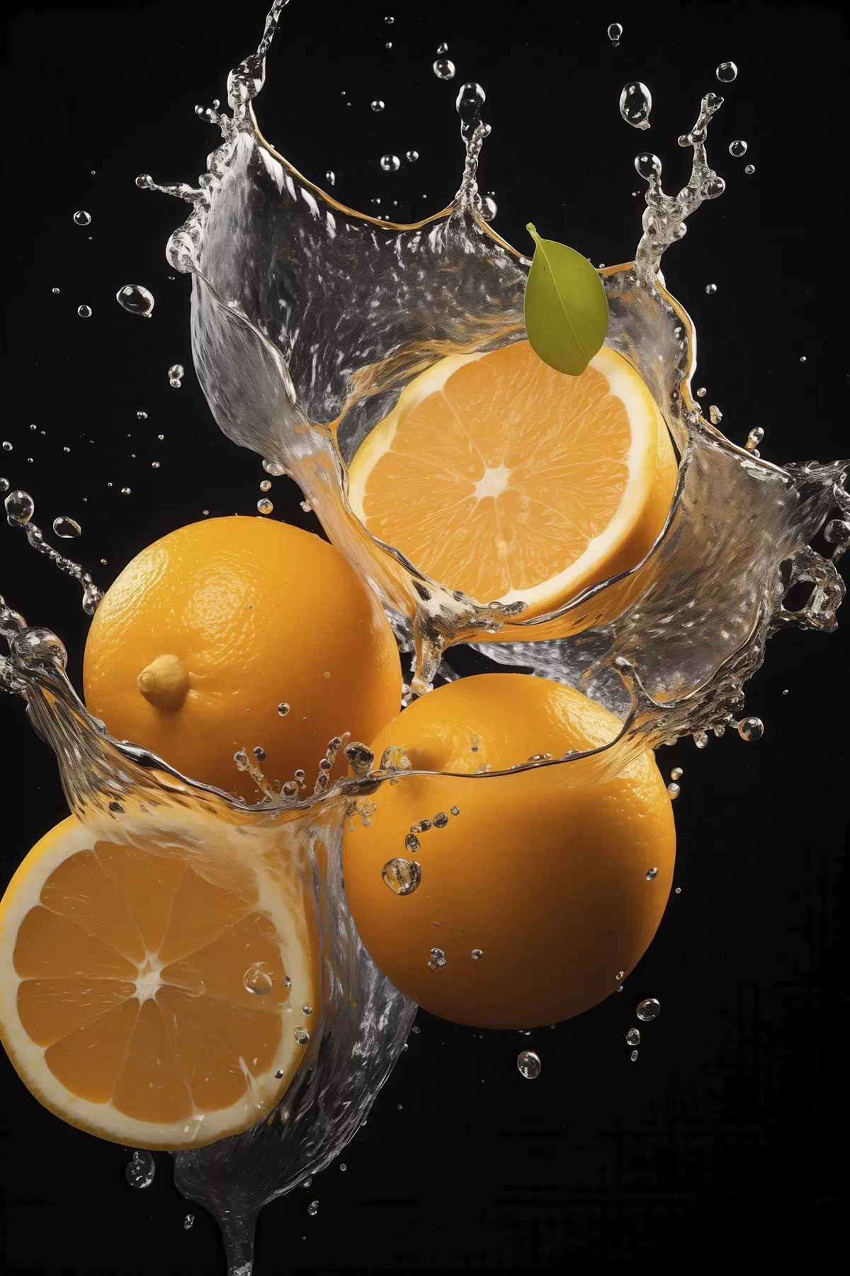 Maalid Mahlased apelsinid vees pritsides Nr s45526