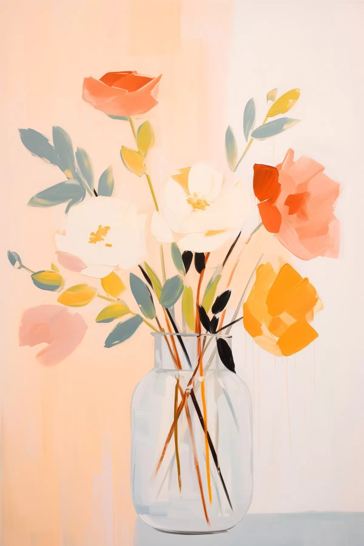 Maalid Dekoratiivsed lilled: abstraktne kimp vaasis heledal taustal Nr s45539