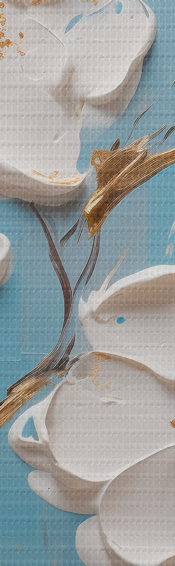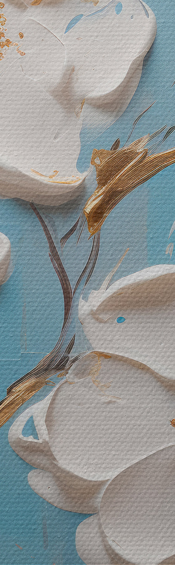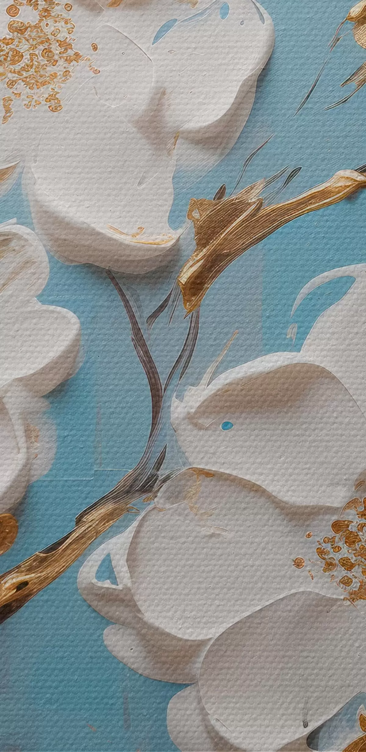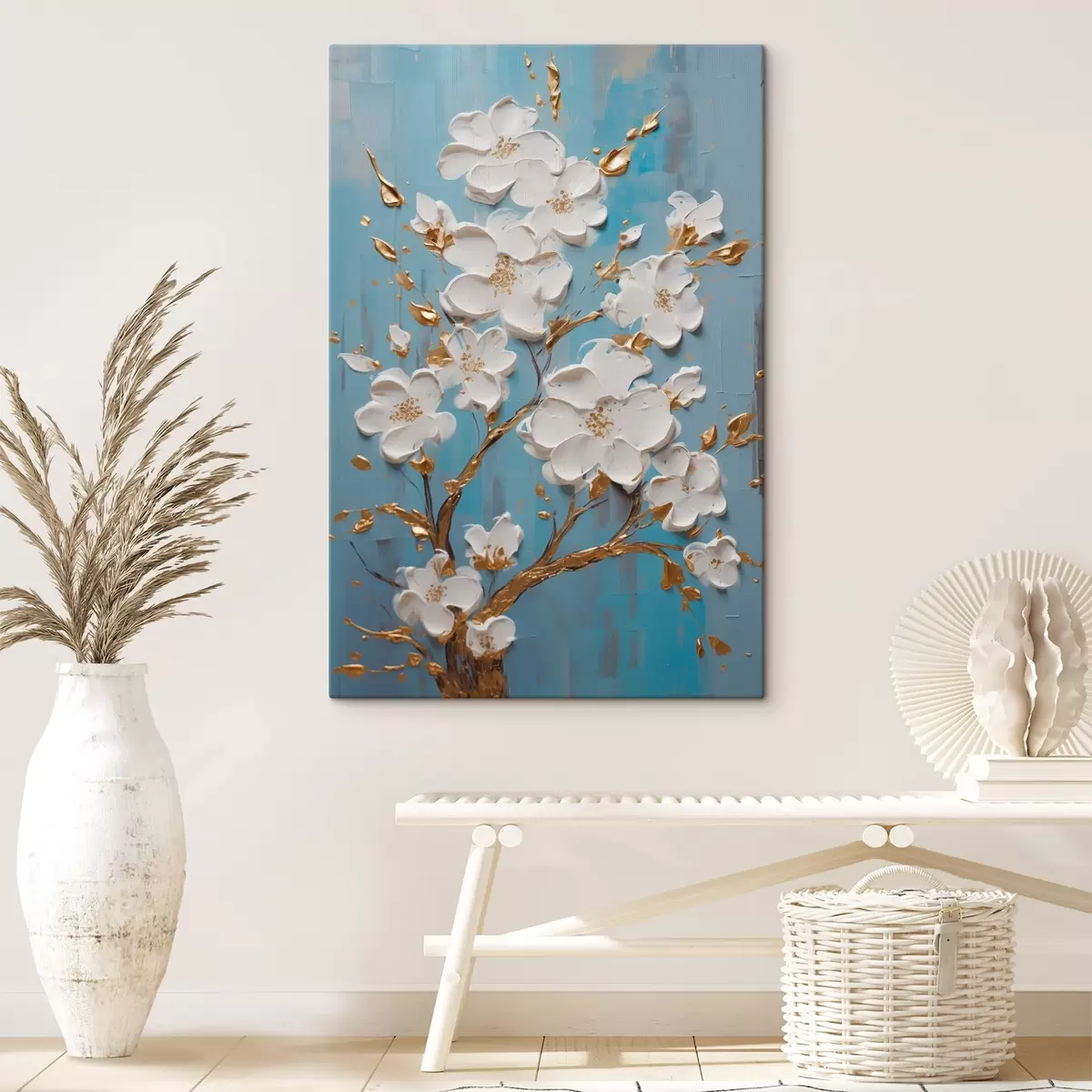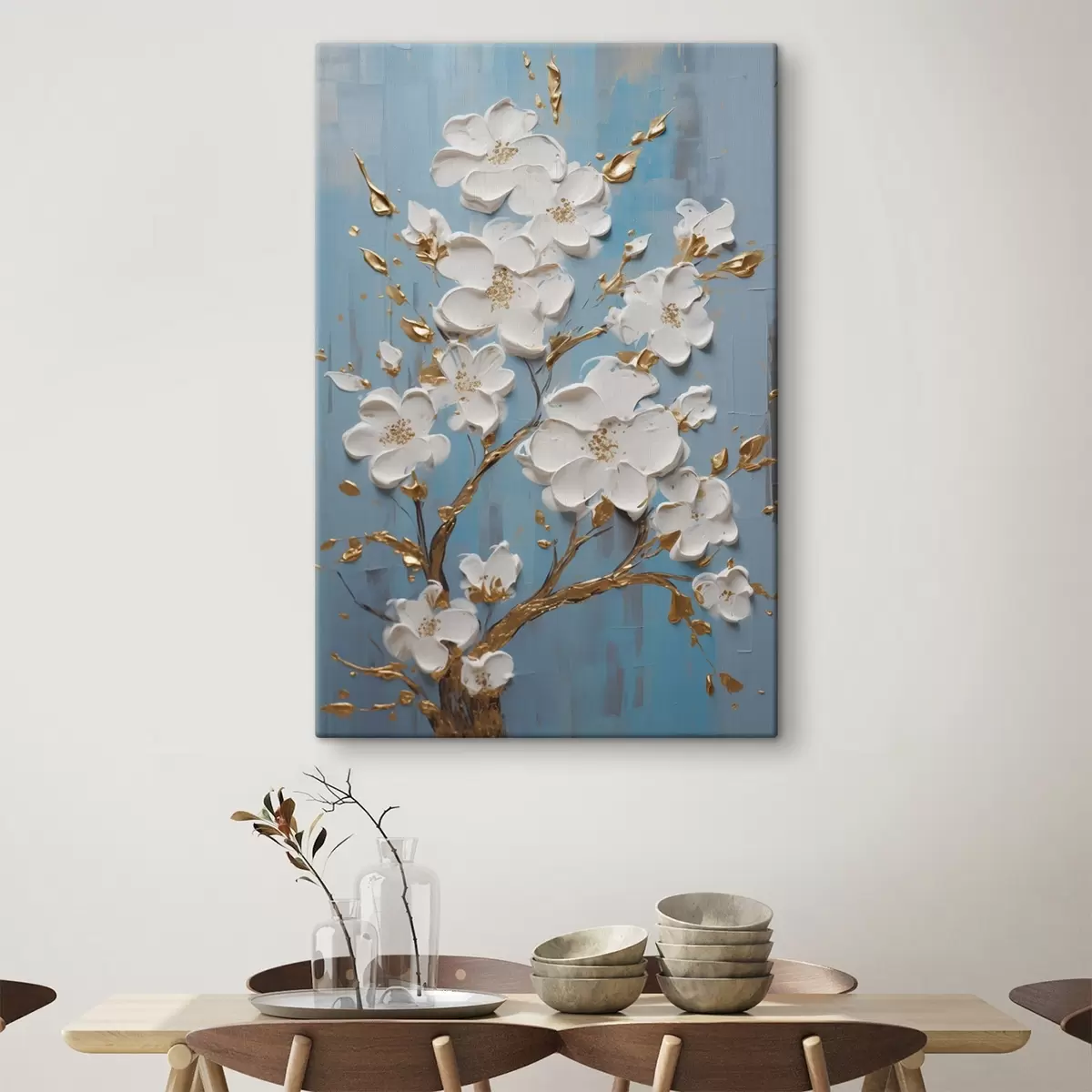 Maalid Valged lilled oksal: helesinistes toonides dekoratiivne motiiv Nr s45541