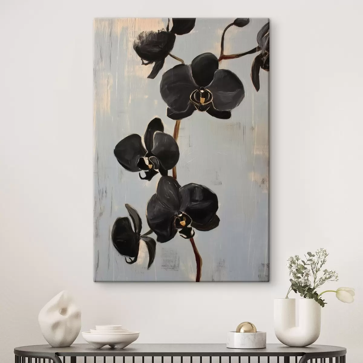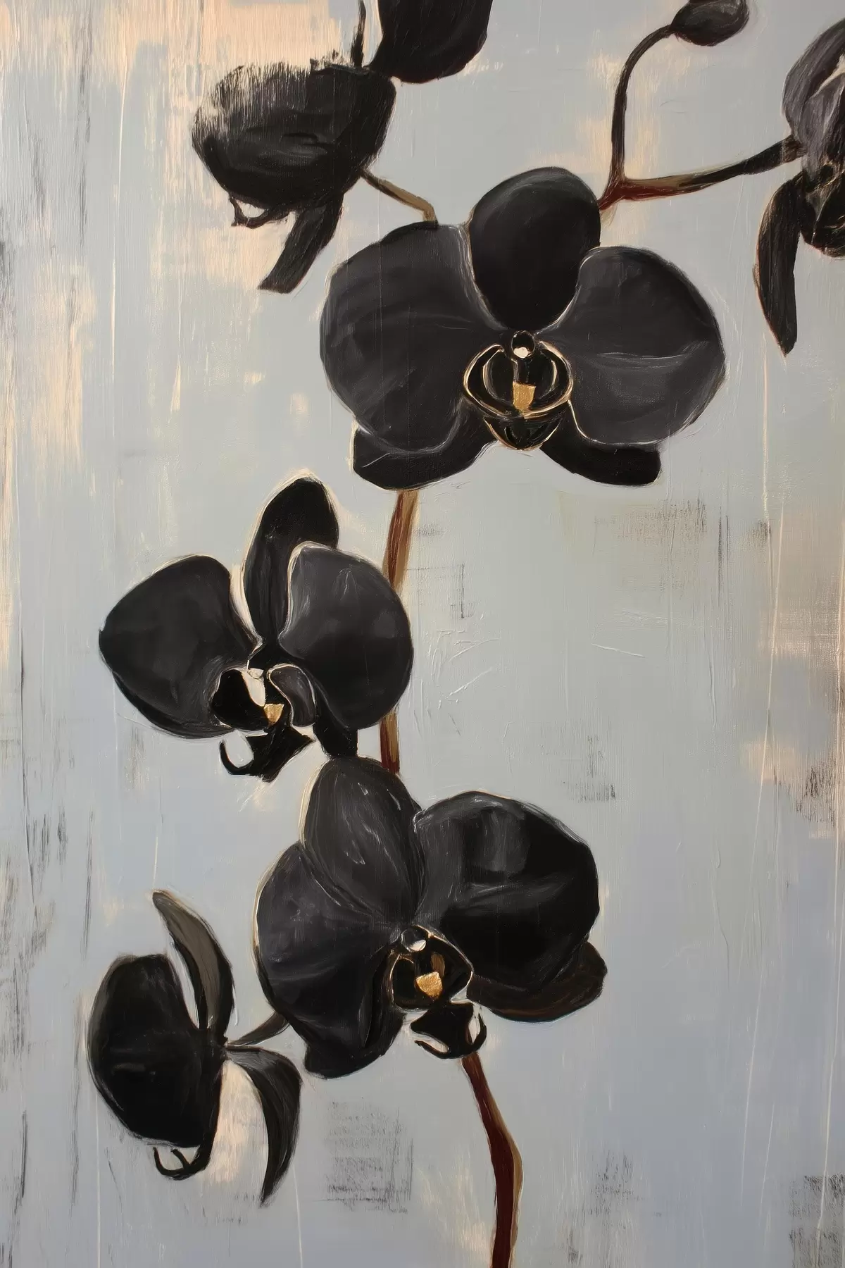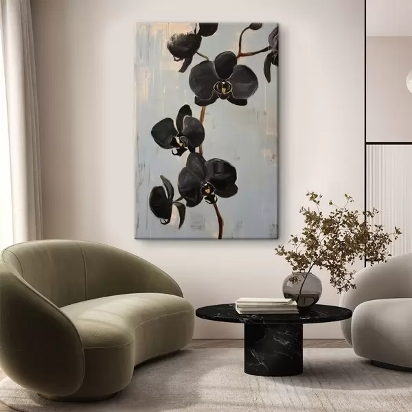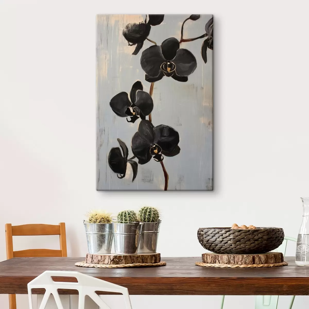Maalid Dekoratiivsed orhideed: mustad lilled halli taustal Nr s45547