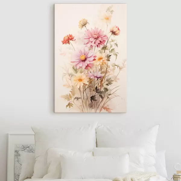 Maalid Värviliste lillede kimp, pehme akvarellstiil, heledal taustal, botaaniline illustratsioon Nr s45560