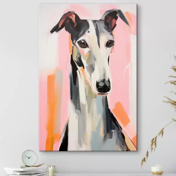 Maalid Hallituskoer roosa, oranži ja valgete pintslitõmmete taustal Nr s45566
