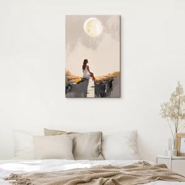 Maalid Tüdruk valges kleidis istub suure kuu all Nr s45621
