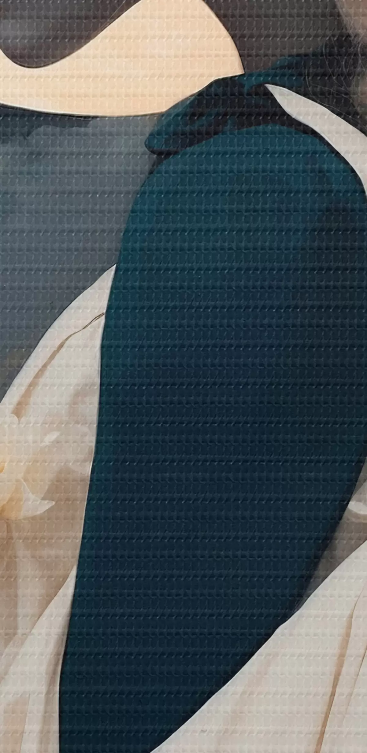 Selle lõuendi peenike niidipunus meenutab professionaalse kunstniku lõuendi pinda.
