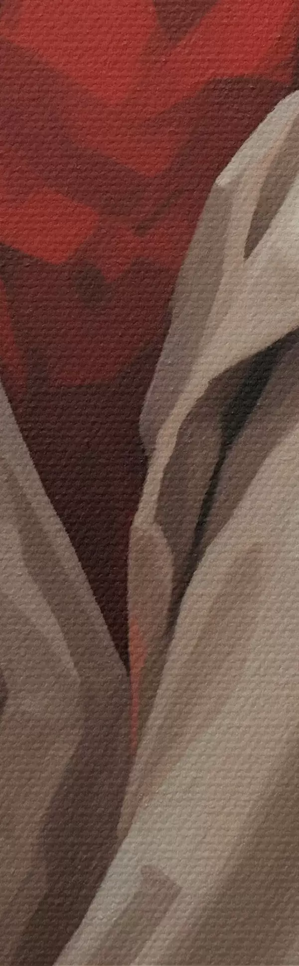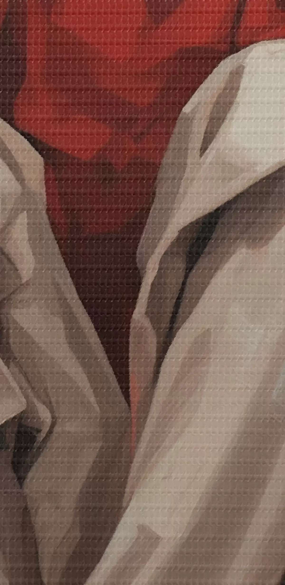 Selle lõuendi peenike niidipunus meenutab professionaalse kunstniku lõuendi pinda.