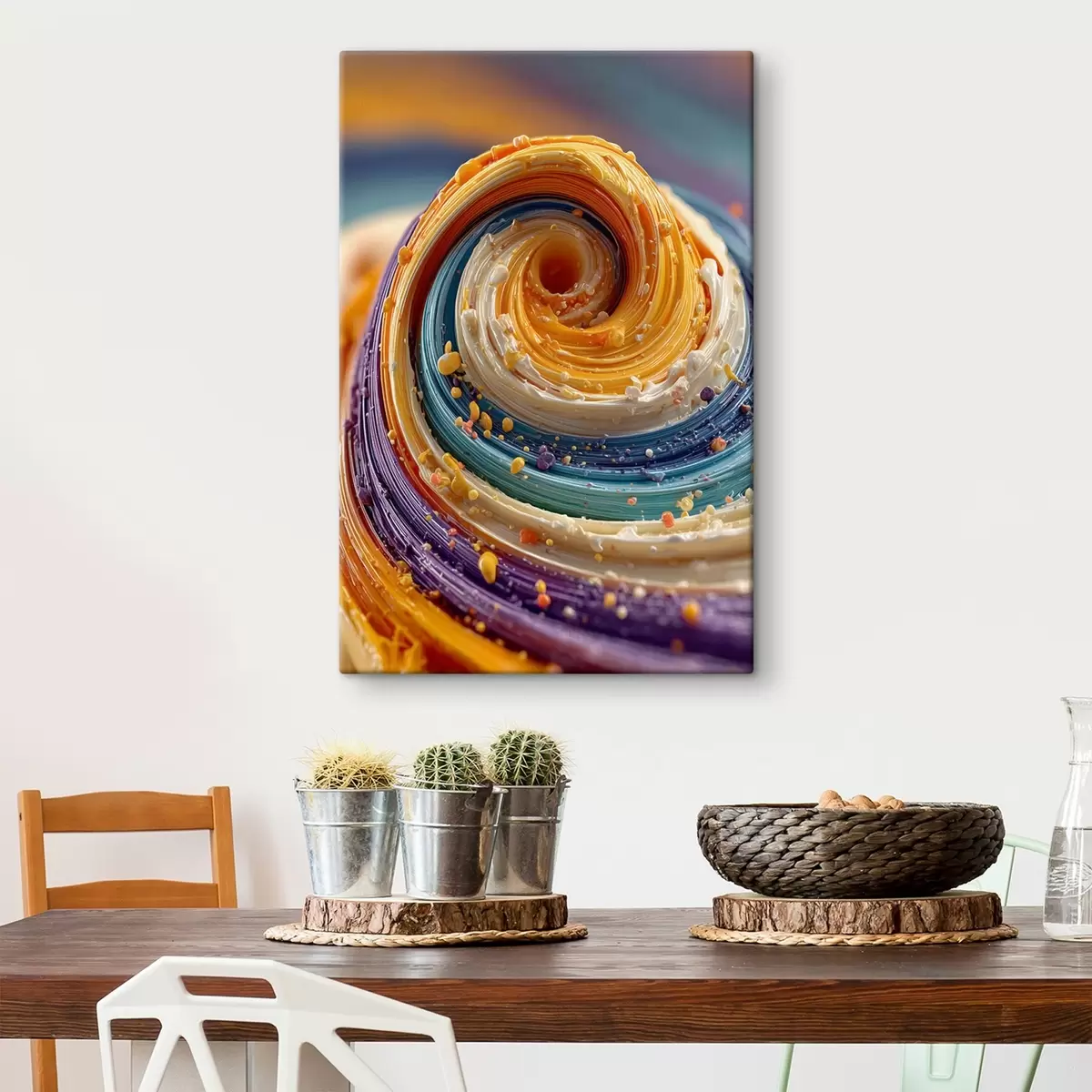 Maali võib riputada kohe pärast selle kättesaamist. Maal on pingutatud 2 cm laiusele puidust kandikule.