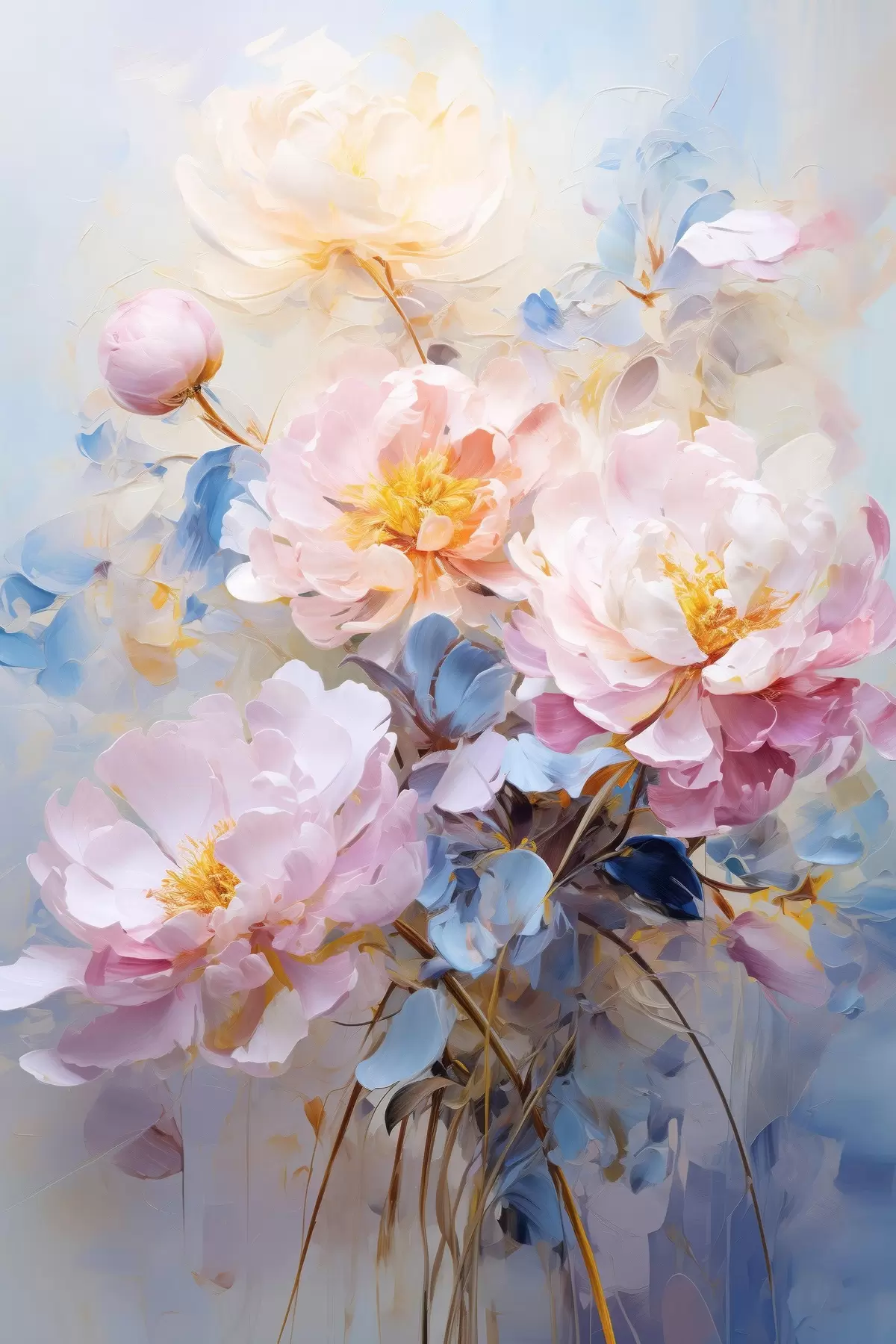Maalid Abstraktsed lilled: roosa ja sinised toonid Nr s45652