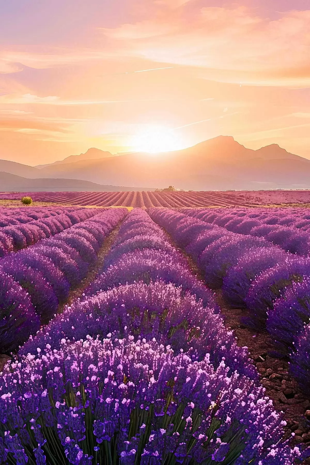 Maalid Päikeseloojang lavendlipõllul Nr s45663