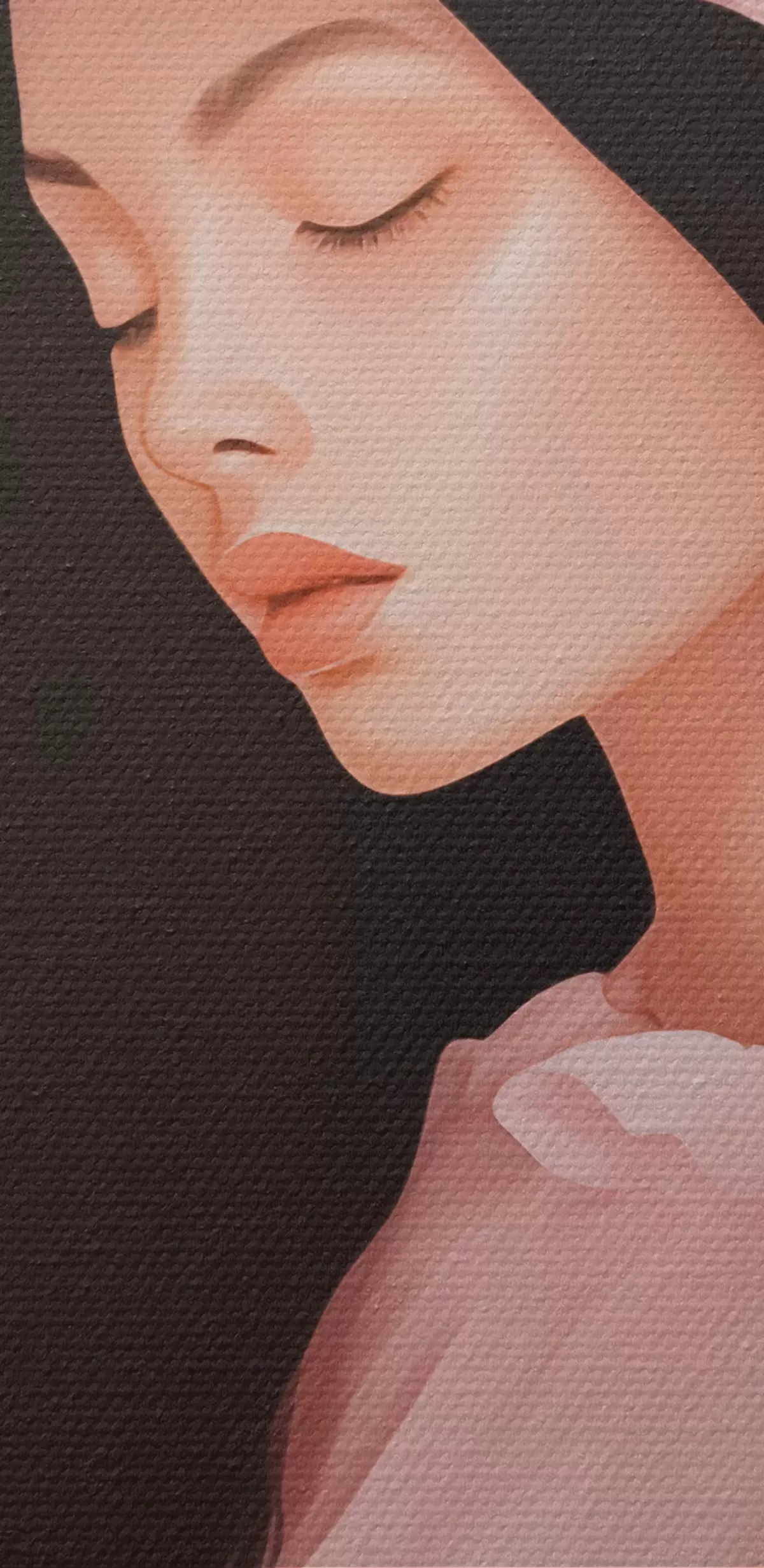 Selle lõuendi peenike niidipunus meenutab professionaalse kunstniku lõuendi pinda.