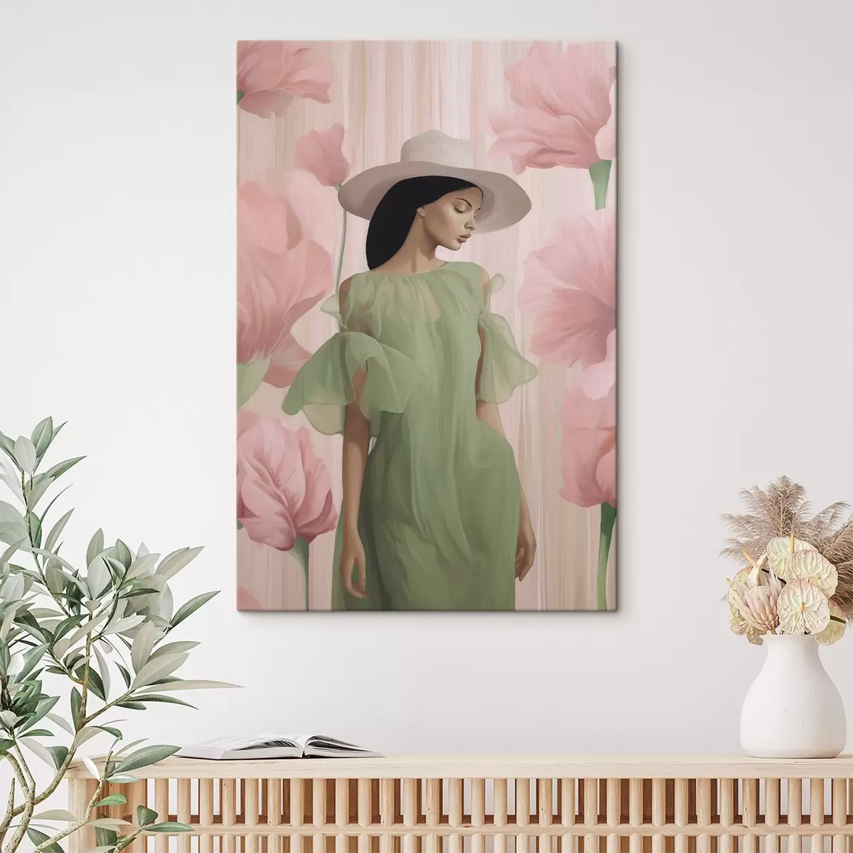 Maalid Tüdruk mütsiga lillede vahel Nr s45678