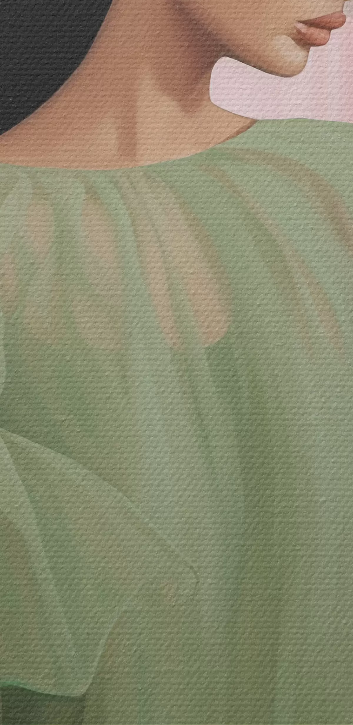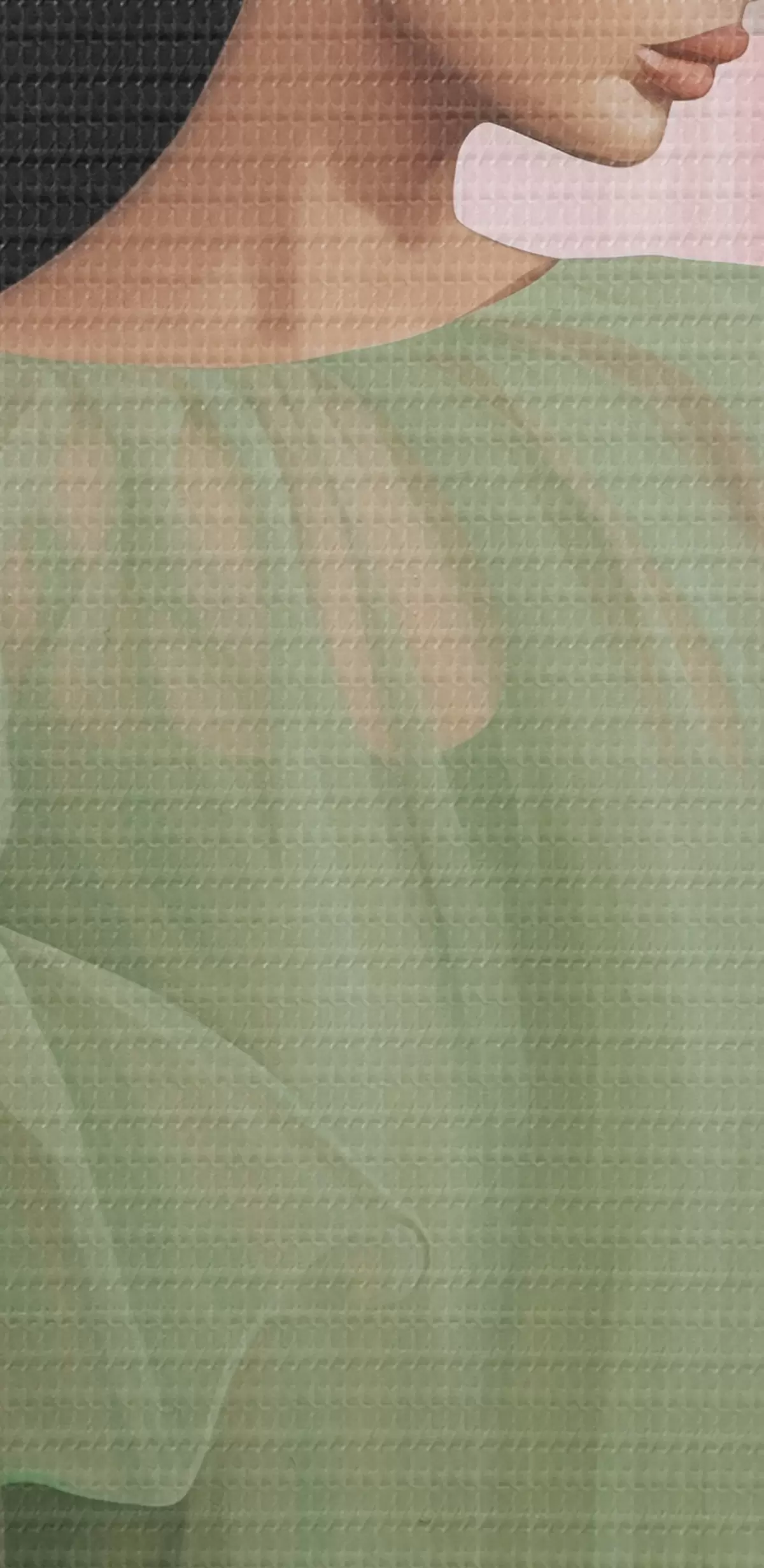 Selle lõuendi peenike niidipunus meenutab professionaalse kunstniku lõuendi pinda.