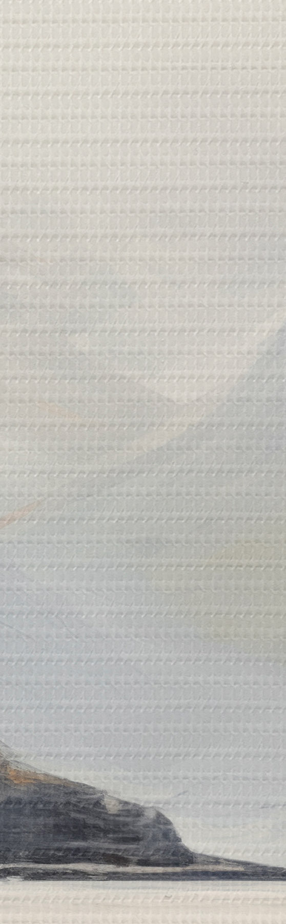 Selle lõuendi peenike niidipunus meenutab professionaalse kunstniku lõuendi pinda.