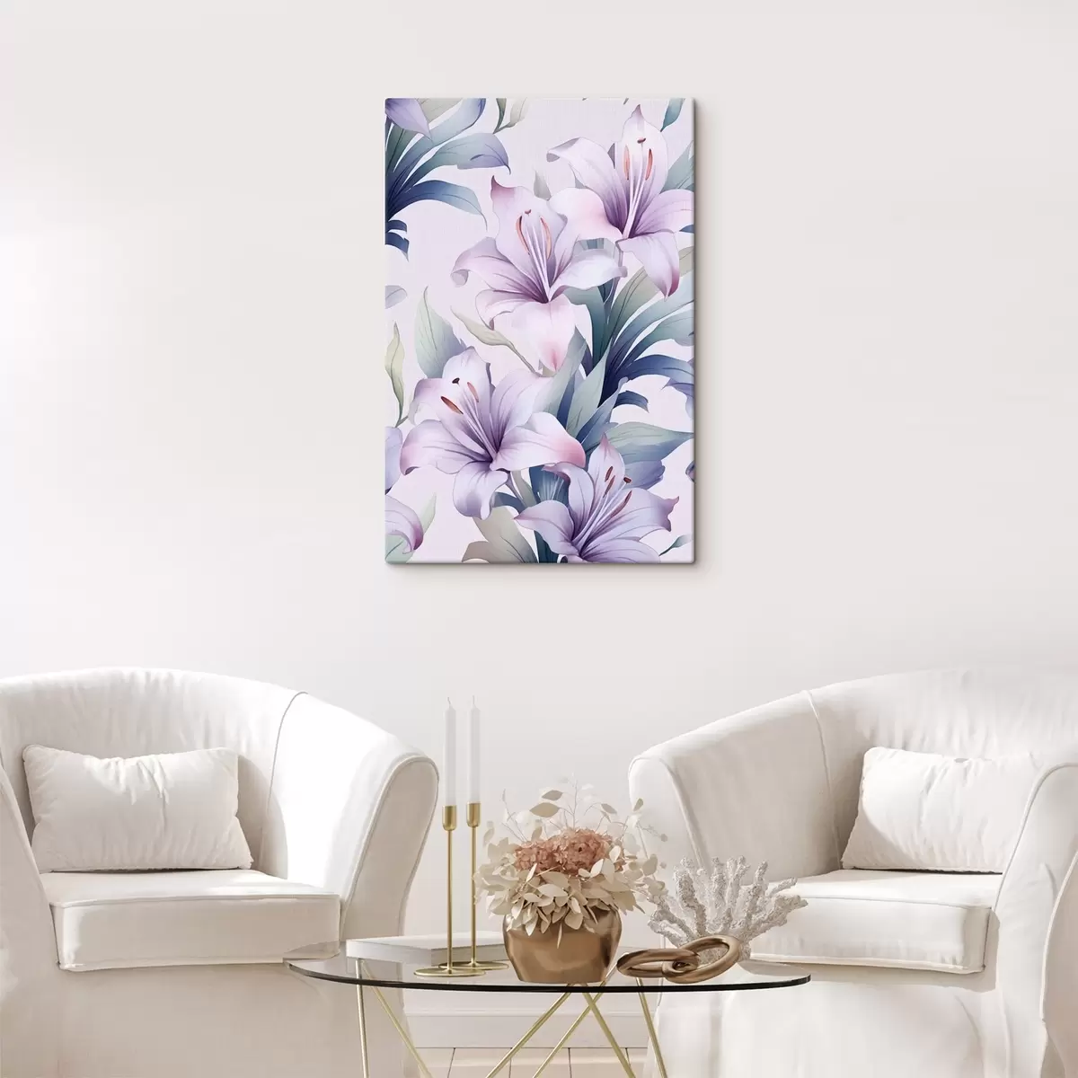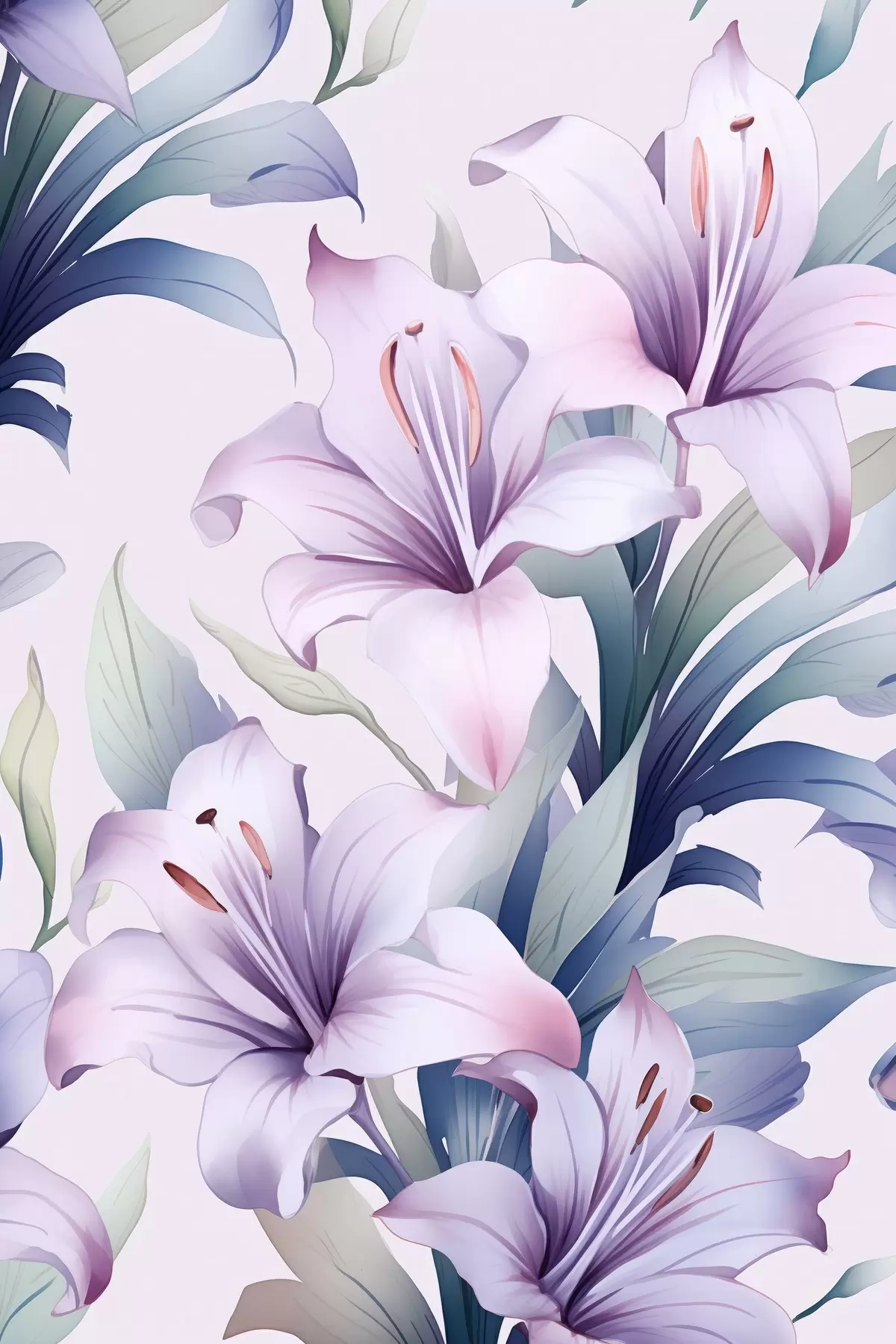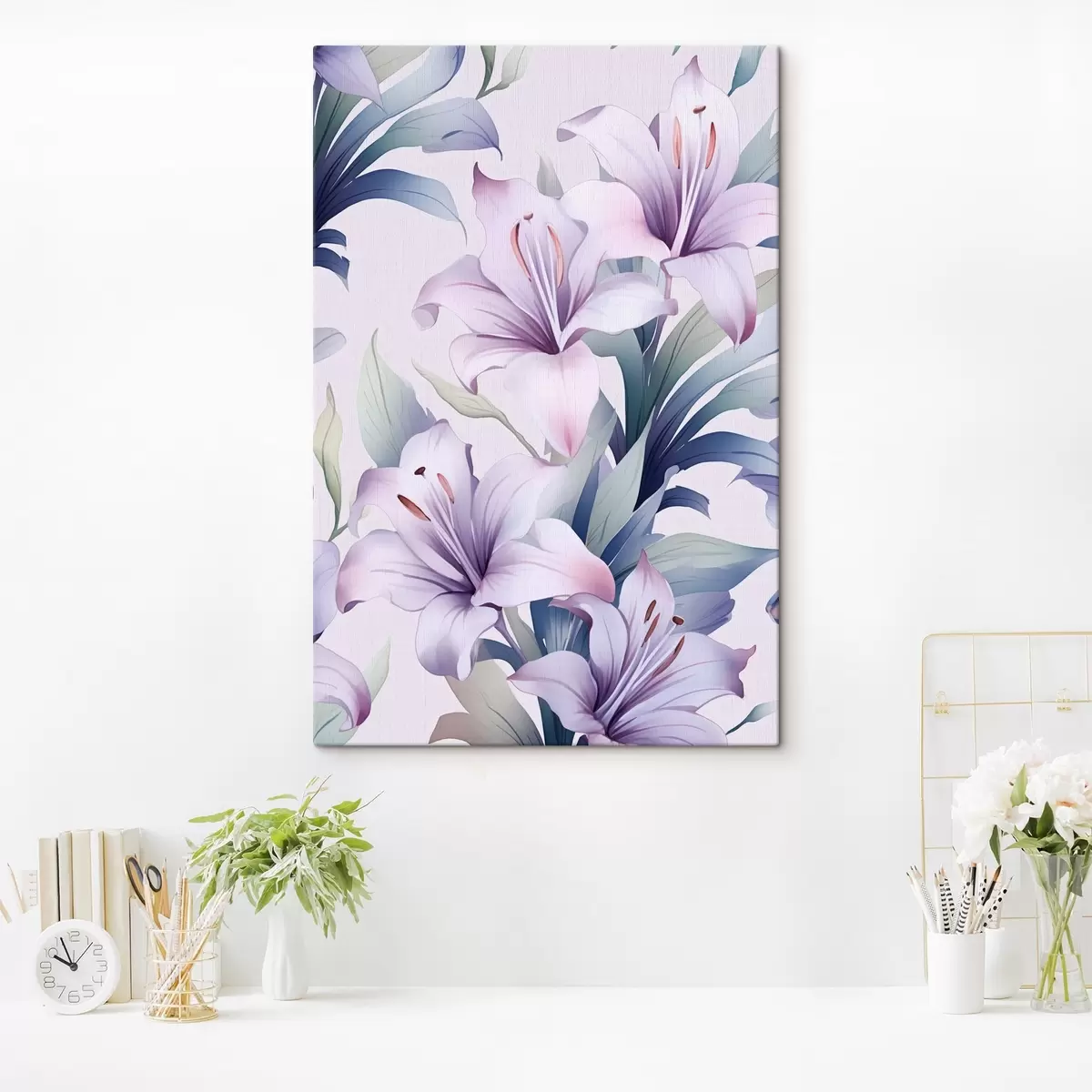 Maalid Suured roosa-lillad lillad roheliste lehtedega lillad Nr s45698