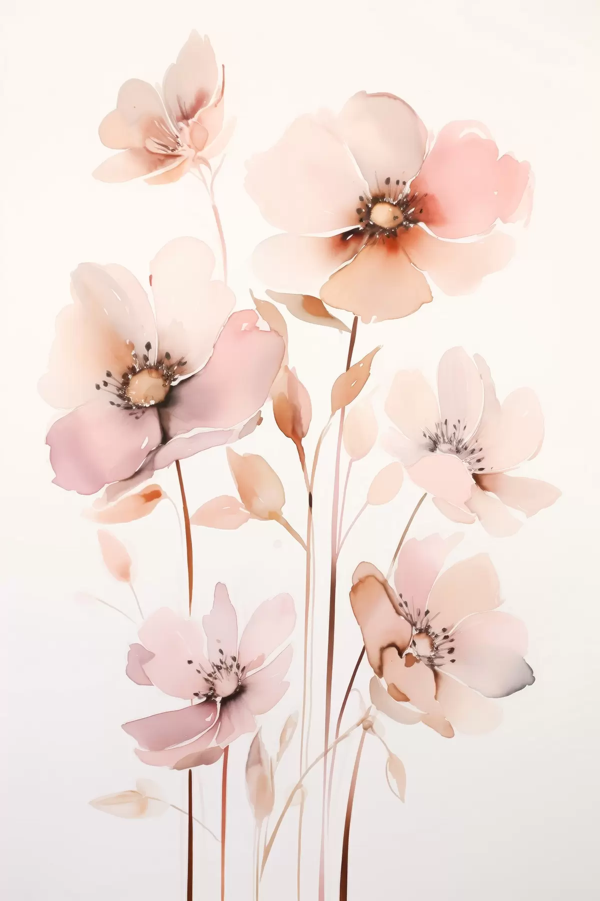 Maalid Vesivärvi roosad lilled õhukestel varrastel Nr s45701
