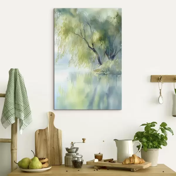 Maalid järve kaldal kasvav paju akvarellstiilis Nr s45715